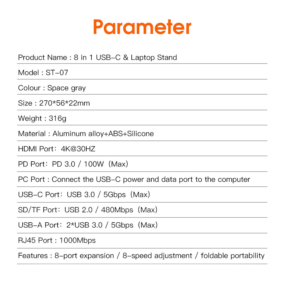 8 대 1 알루미늄 합금 확장 도크 노트북 브래킷 맞춤형 허브 인터페이스 HDMI 냉각 태블릿 브래킷