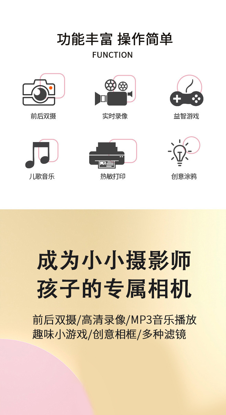 新品拍立得儿童数码相机可爱卡通迷你小孩玩具高清打印照相机礼物