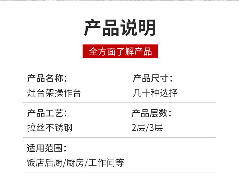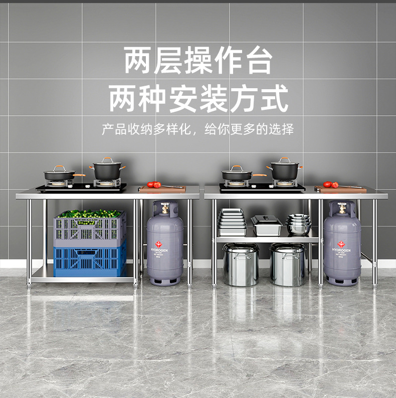 맞춤형 스테인레스 스틸 주방 작업대 다층 보관 랙 주방 가스 스토브 스탠드 야채 절단 및 고기 절단 작업대스토어 가기
