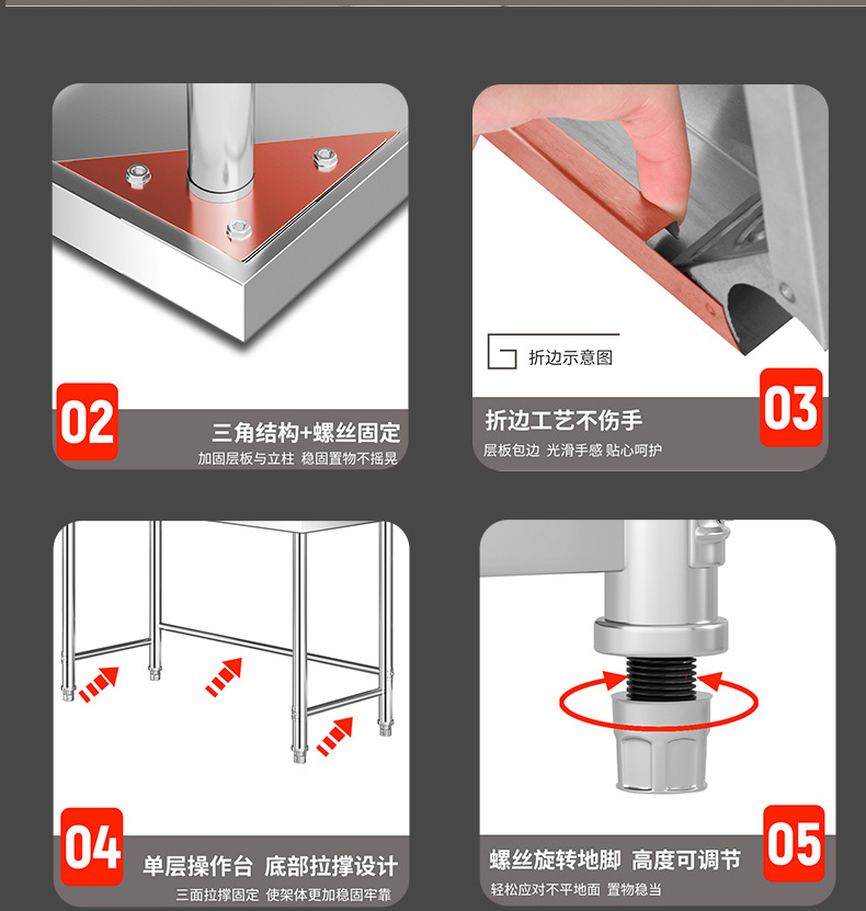 맞춤형 스테인레스 스틸 주방 작업대 다층 보관 랙 주방 가스 스토브 스탠드 야채 절단 및 고기 절단 작업대