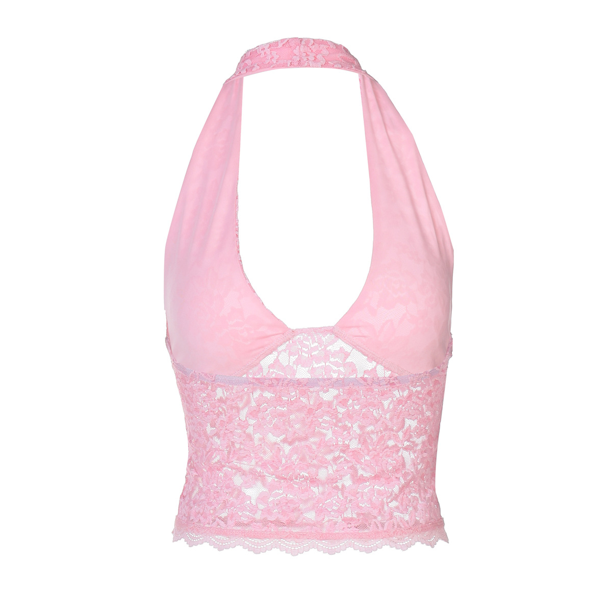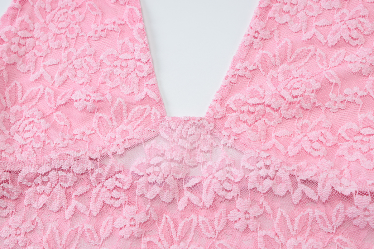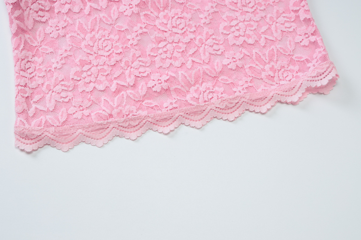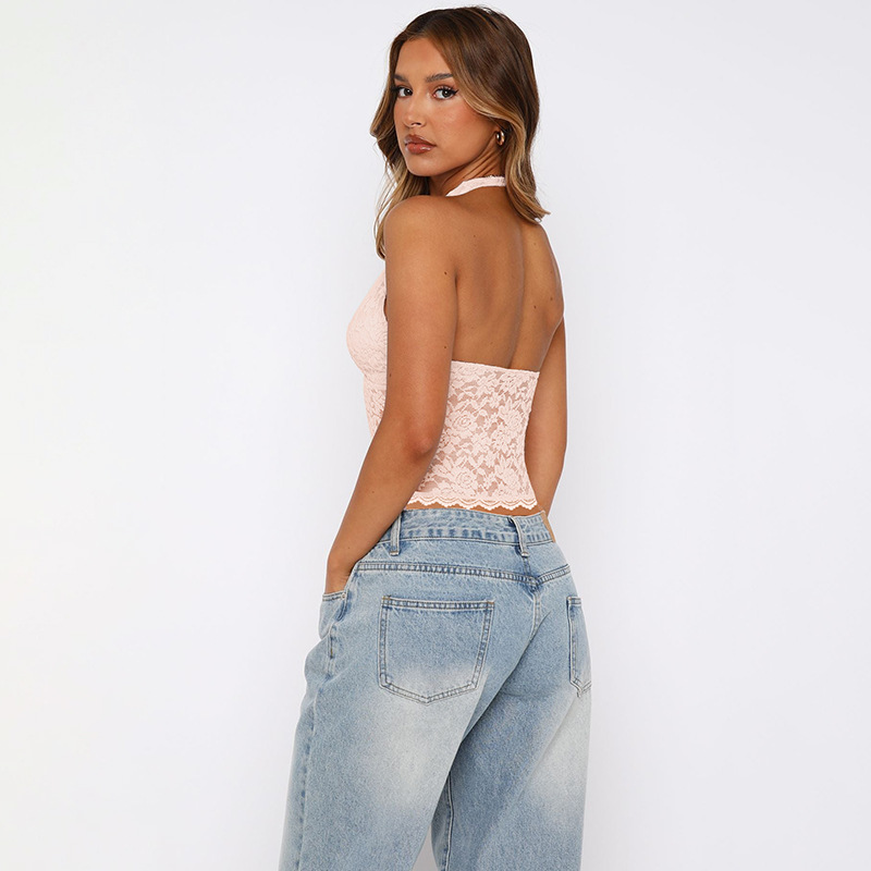 유럽과 미국 여성의 2025 여름 새로운 뜨거운 소녀 속이 빈 레이스 슬림 섹시한 작은 조끼 조커 넥 탑 도매