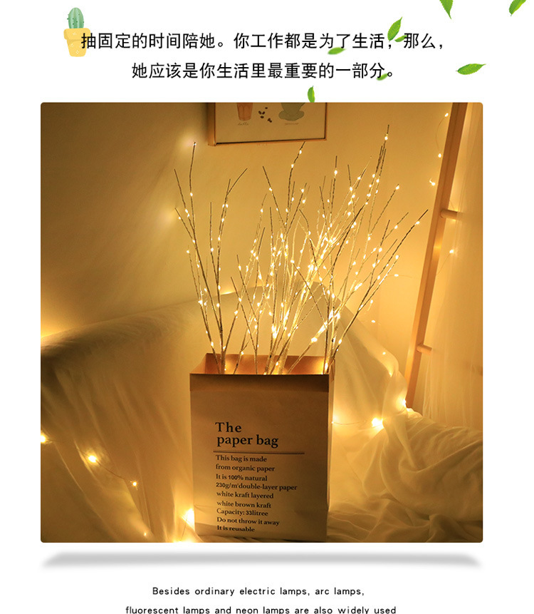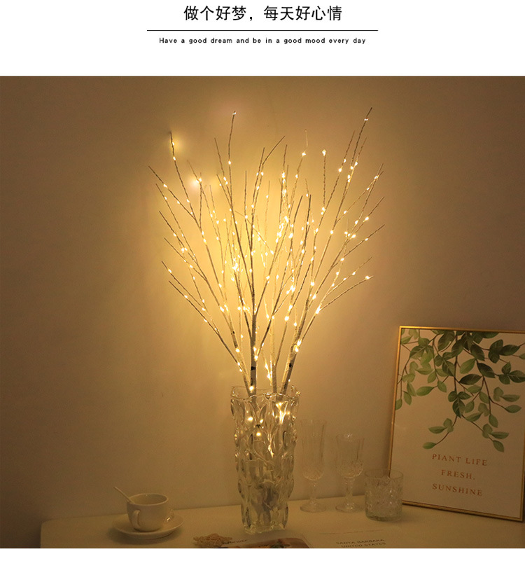 새로운 LED 구리 와이어 나뭇가지 조명, 실내 장식용 자작나무 모양 조명, 거실 및 침실 DIY 창의적인 꽃병 조명