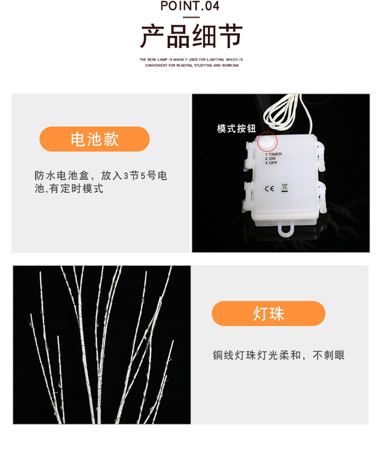 • 자작나무 가지 램프 단일(일반 2셀 배터리 박스)