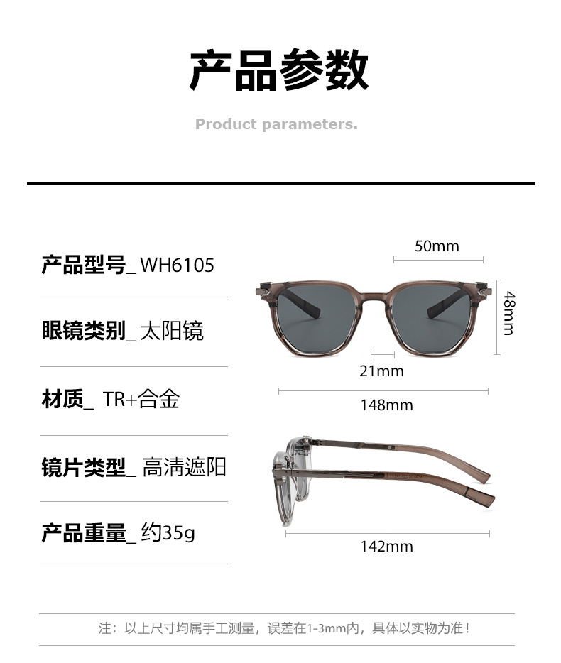 2024 새로운 유럽과 미국의 남성 스퀘어 안경 복고풍 더블 빔 박스 선글라스 국경 간 재고 6105스토어 가기