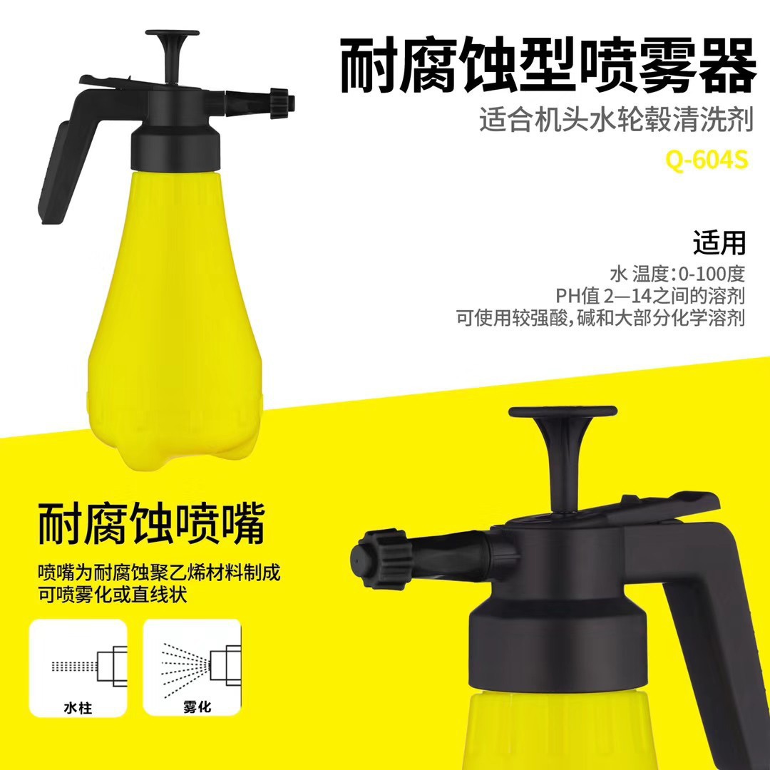 노란색 수동 압력 분무기 홈 원예 세차 공기 압력 스프레이 주전자 2L 산 및 알칼리성 자체 청소 요소