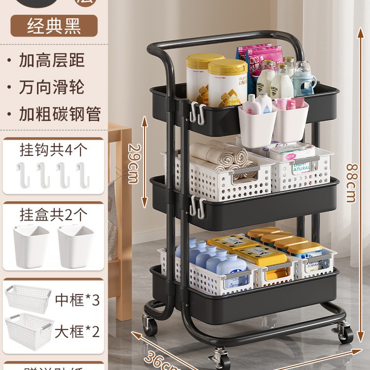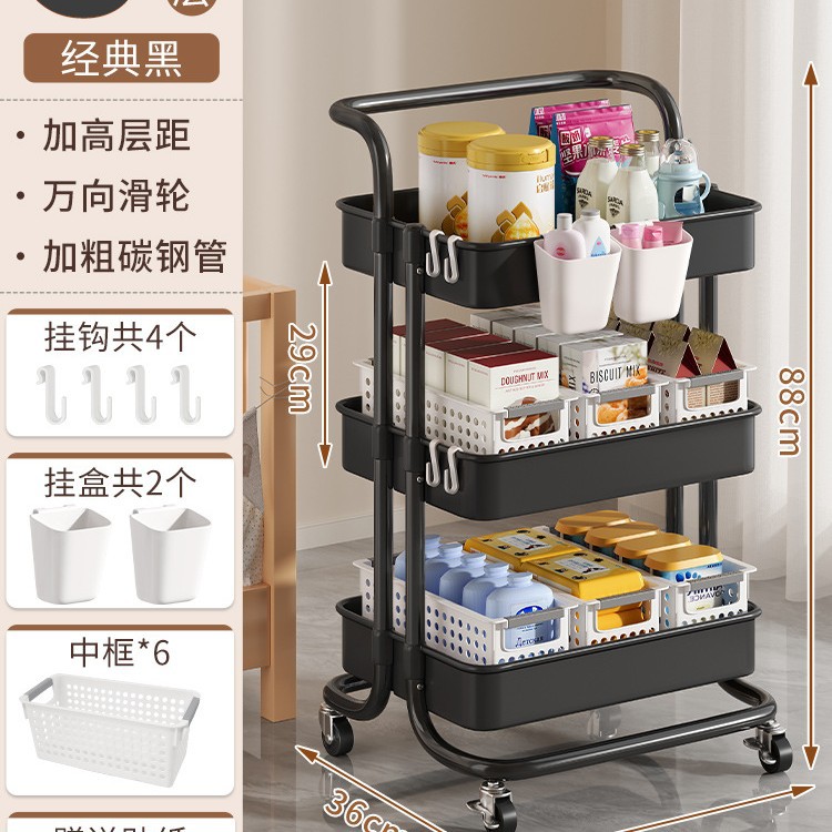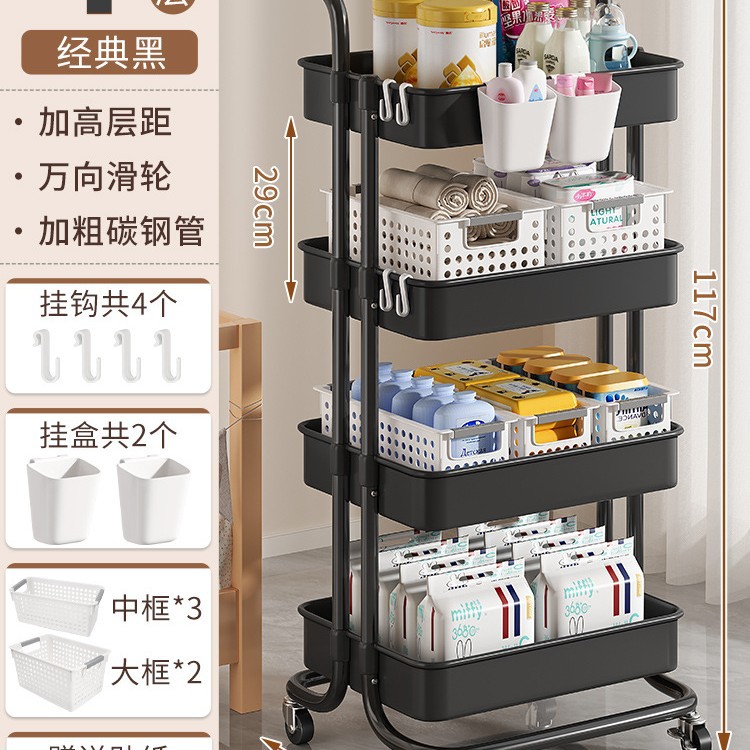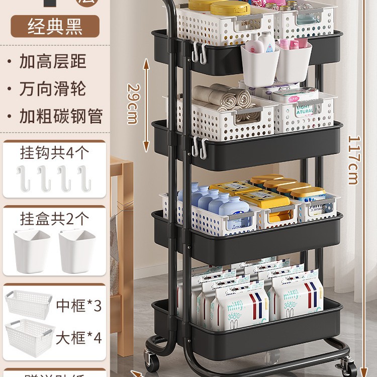 • 두꺼운 플래그십 - 검정색 중간 바구니 4겹*3+대형 바구니*4+걸이 상자*2 [금속 바퀴+후크+스티커 포함]