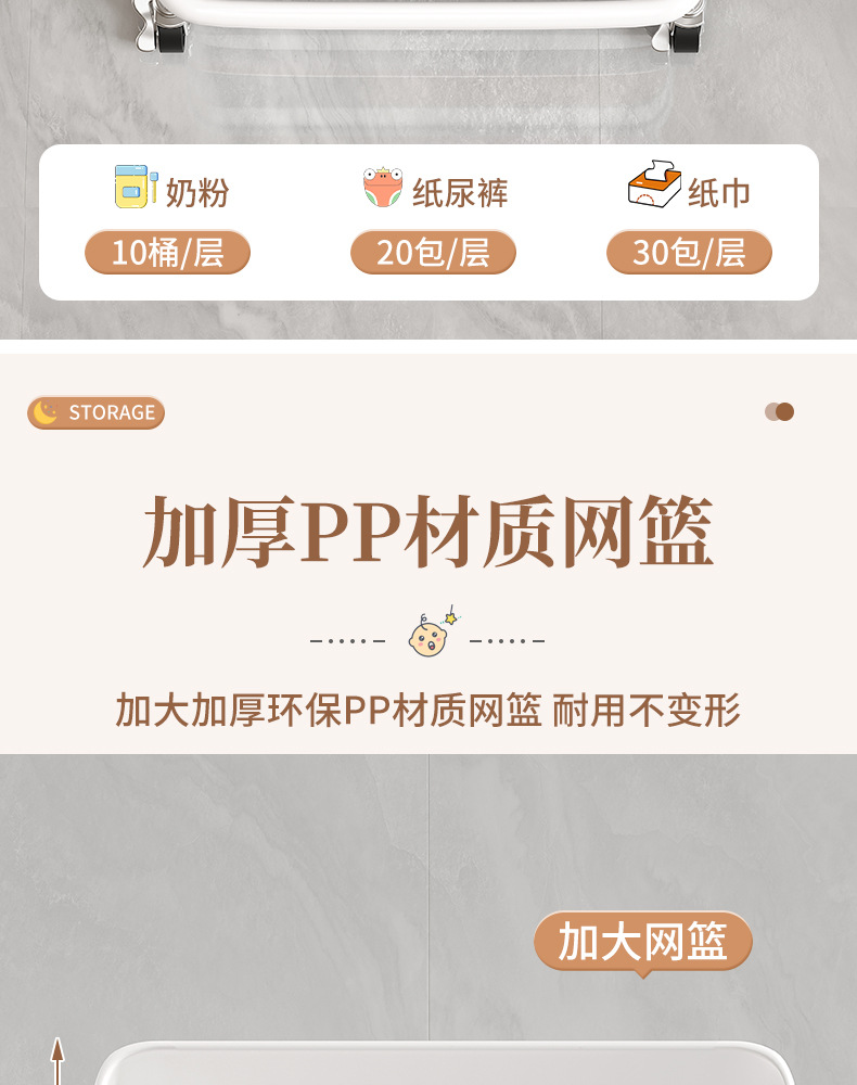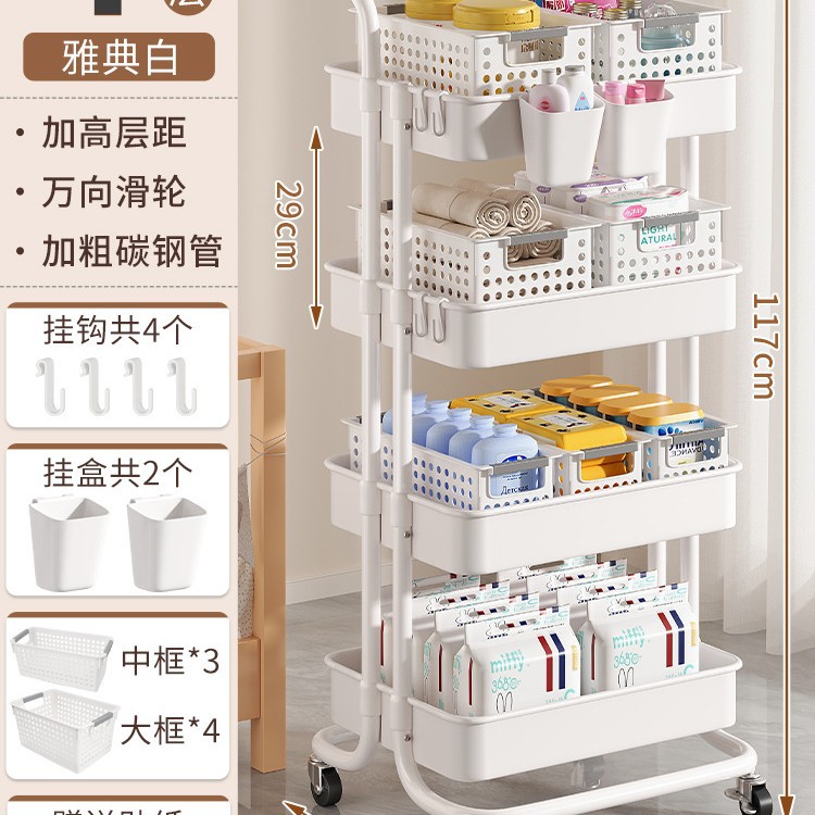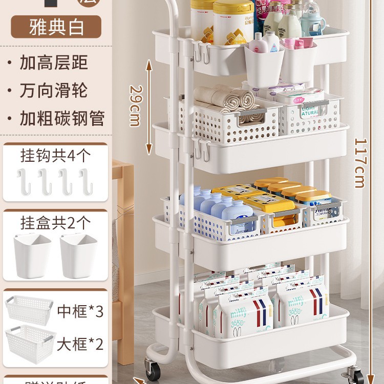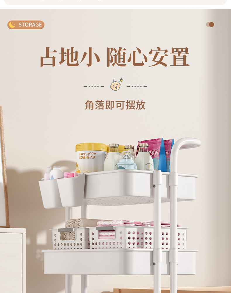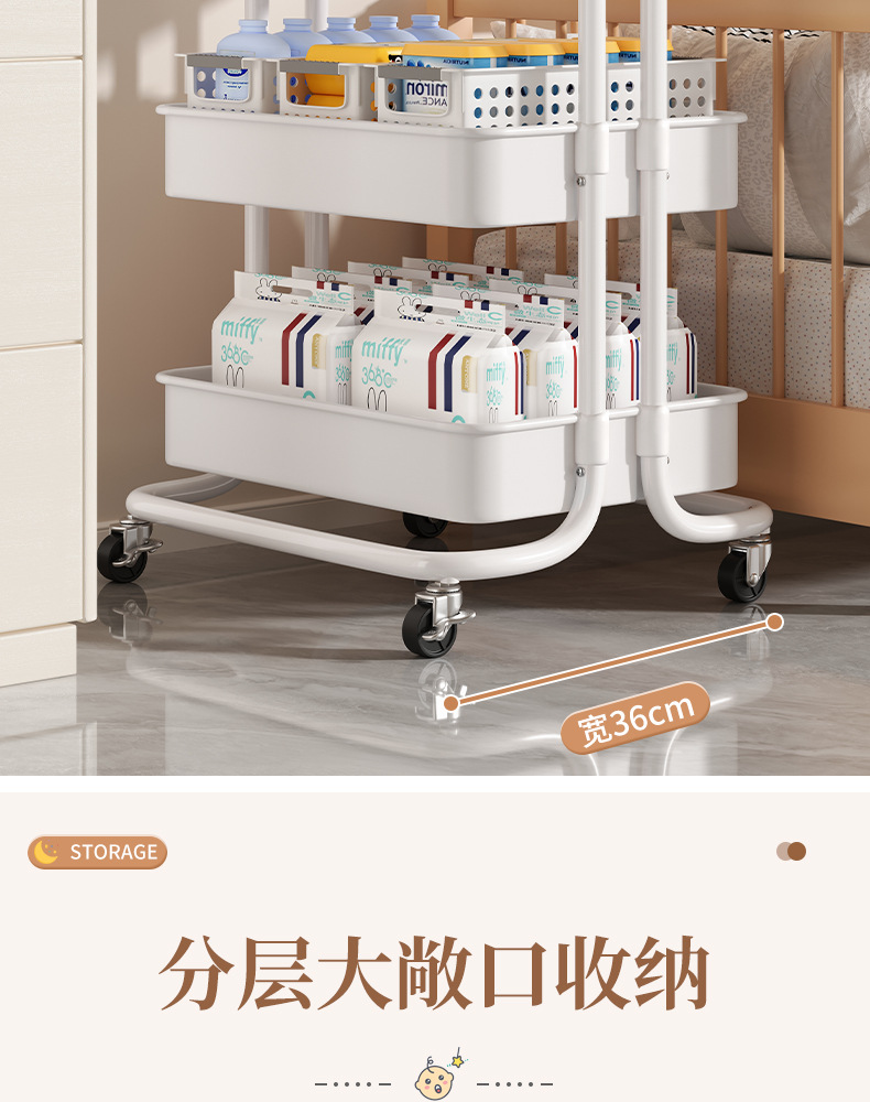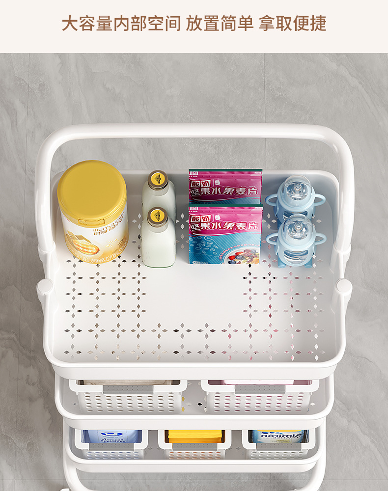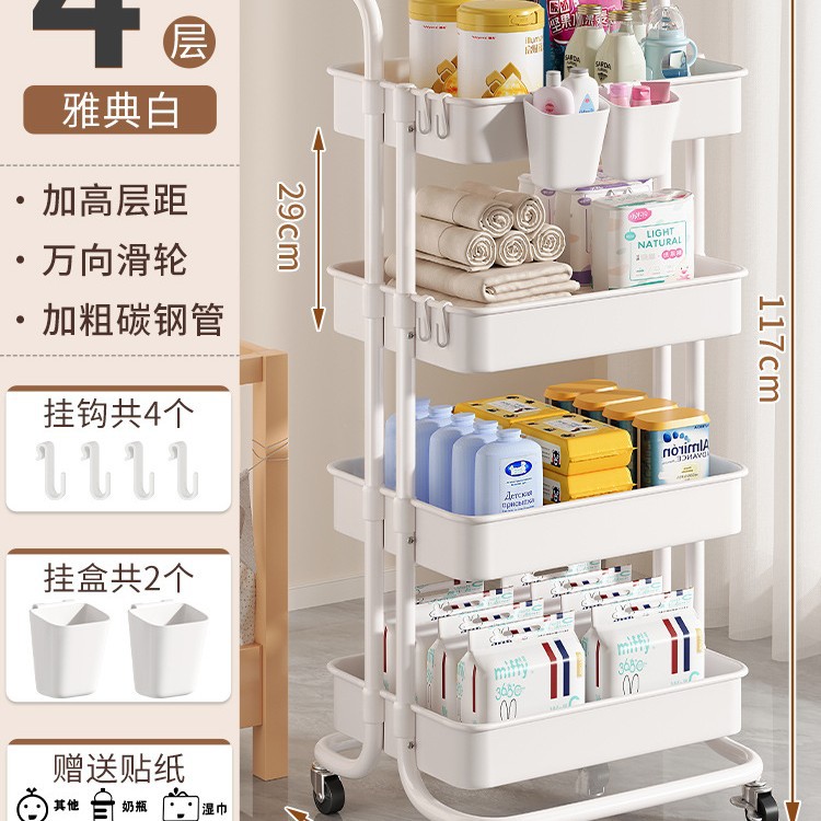 작은 카트 간식 저장 랙 움직일 수있는 다층 아기 신생아 제품 저장 랙 침실 바닥 보관 랙