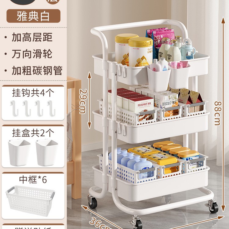 • 두꺼워진 럭셔리 - 흰색 중간 바구니 3겹*3+걸이 상자*2 [무료 금속 바퀴+후크+스티커]
