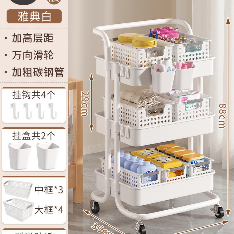 • 두꺼운 플래그십 - 흰색 중간 바구니 4겹*3+대형 바구니*4+걸이 상자*2 [무료 금속 바퀴+후크+스티커]