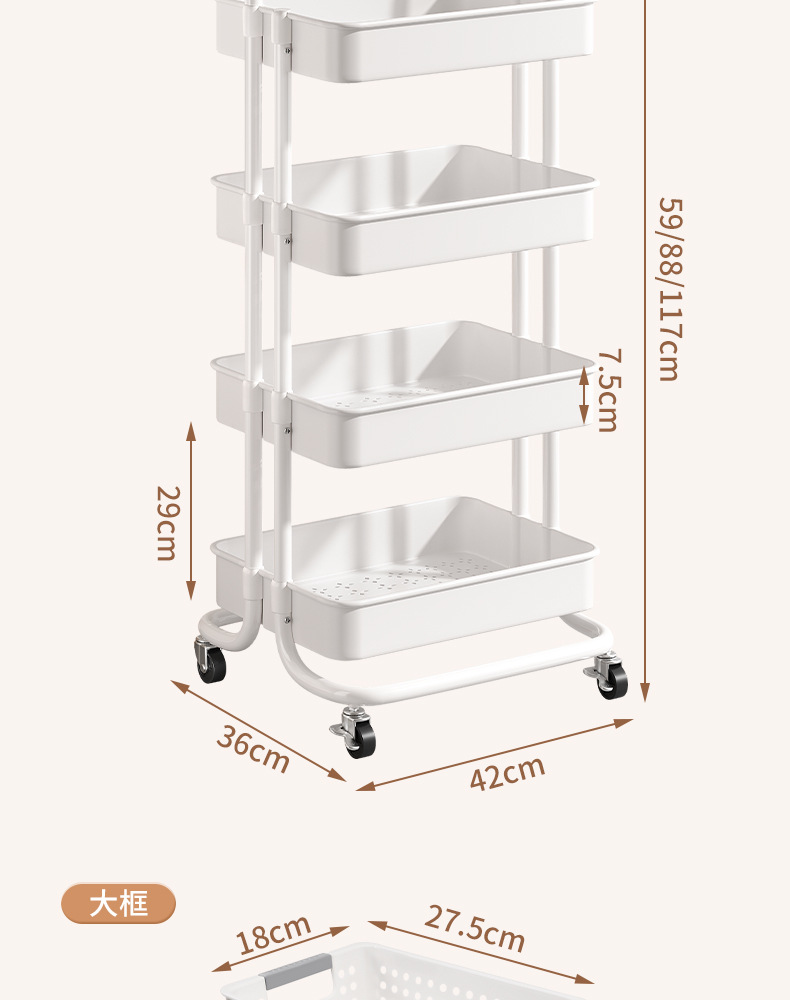 • 두꺼운 플래그십 - 흰색 중간 바구니 4겹*3+대형 바구니*2+걸이 상자*2 [무료 금속 바퀴+후크+스티커]