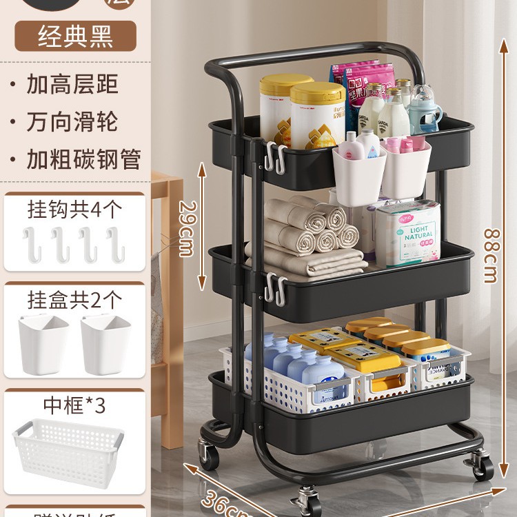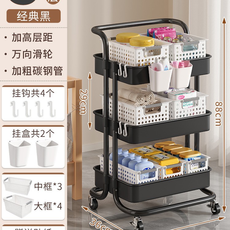 • 두꺼워진 럭셔리 - 검정색 중간 바구니 3겹*3+대형 바구니*4+걸이 상자*2 [금속 바퀴+후크+스티커 포함]