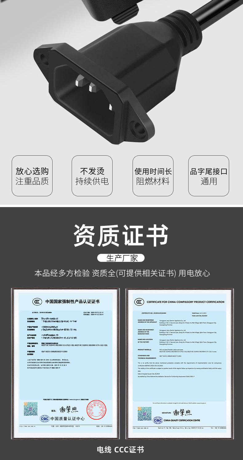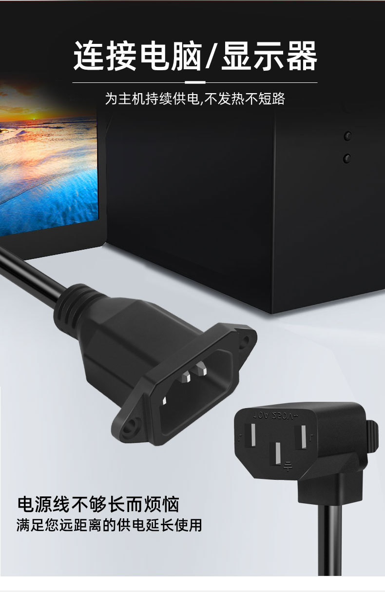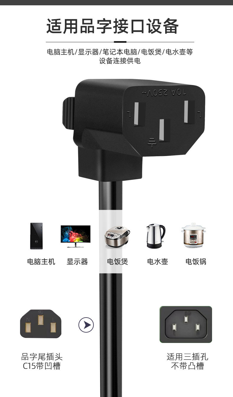 3C 인증 국가 표준 13 ~ C14 연장 코드 3 플러그 테일 전원 코드 컴퓨터 호스트 남성 대 여성 플러그 코드스토어 가기