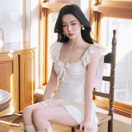 [첫사랑 화이트 스커트] 고급 질감 휴가 순수 욕망 결합 된 수영복 비키니 보수 육체 커버 스키니 온천