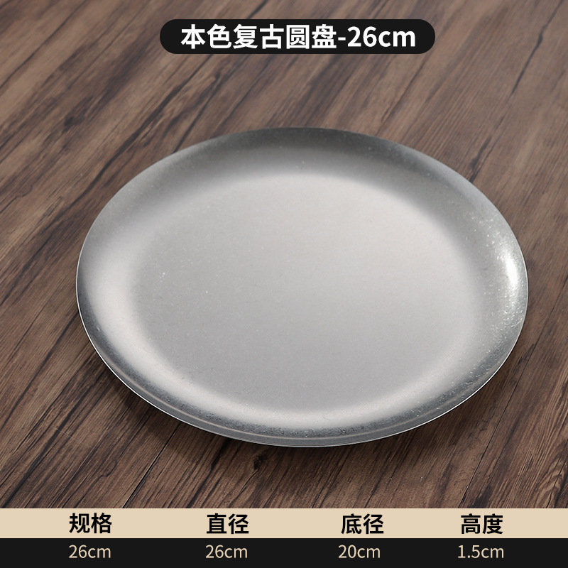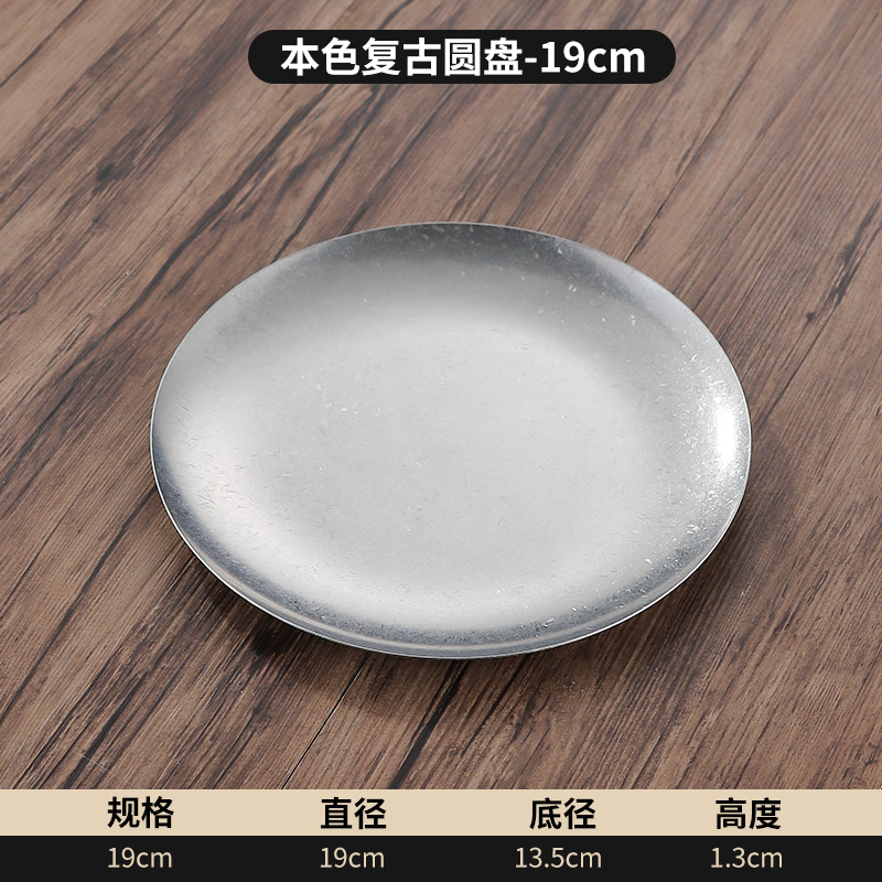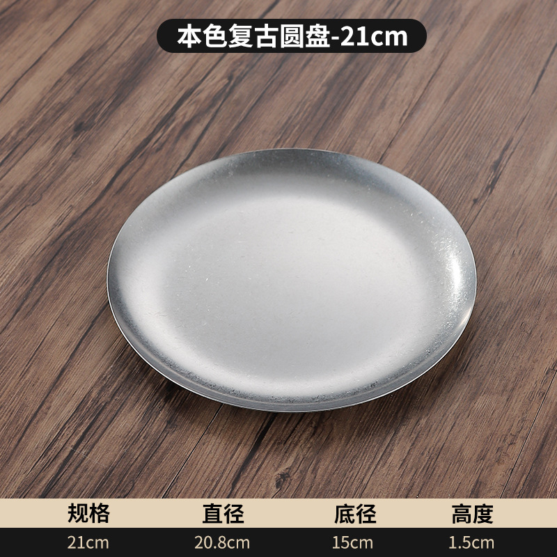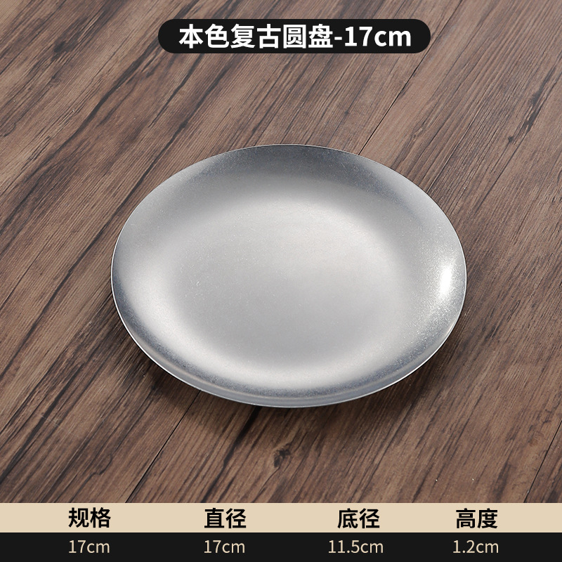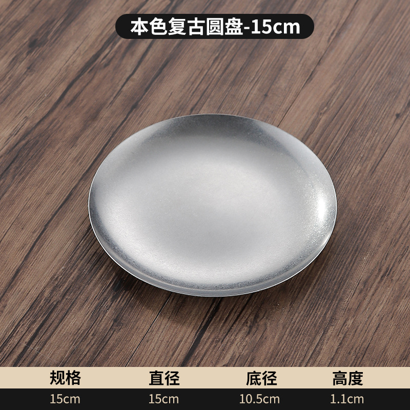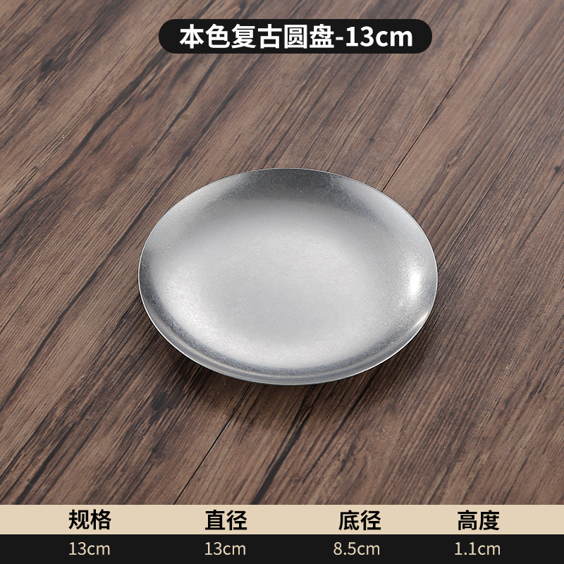빈티지 스테인레스 스틸 플레이트 오래 된 미국 디너 플레이트 작은 디스크 얕은 플레이트 뼈 디저트 플레이트 플랫 플레이트 카페 케이크 플레이트스토어 가기