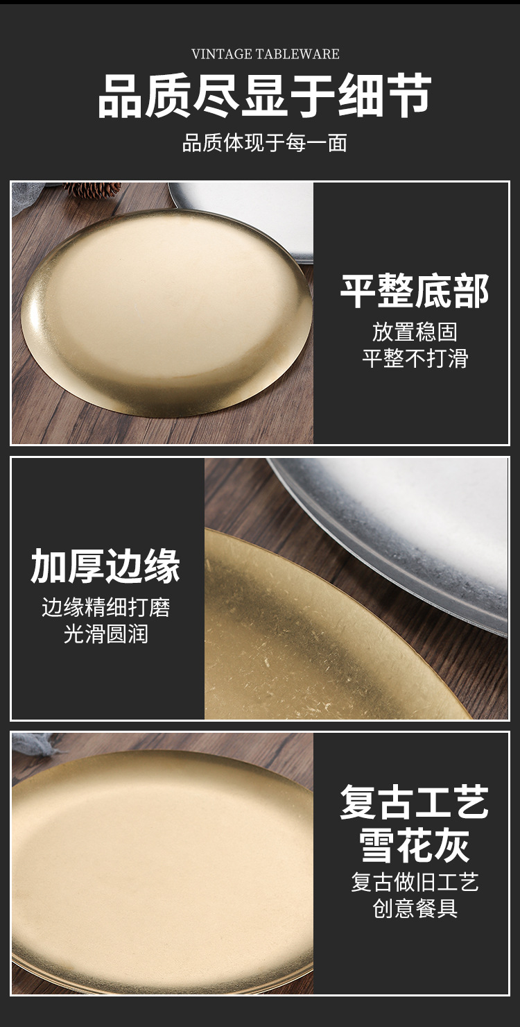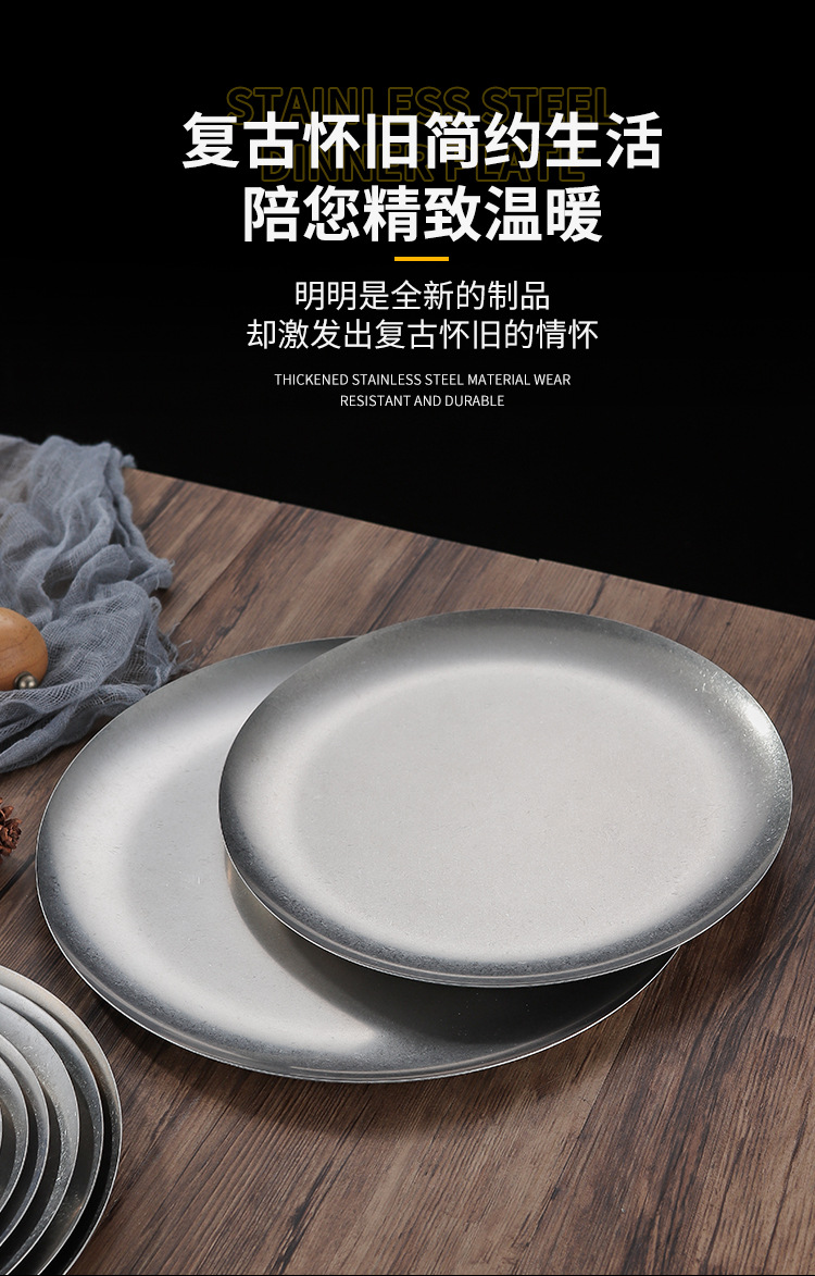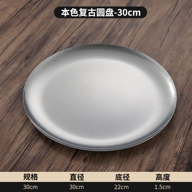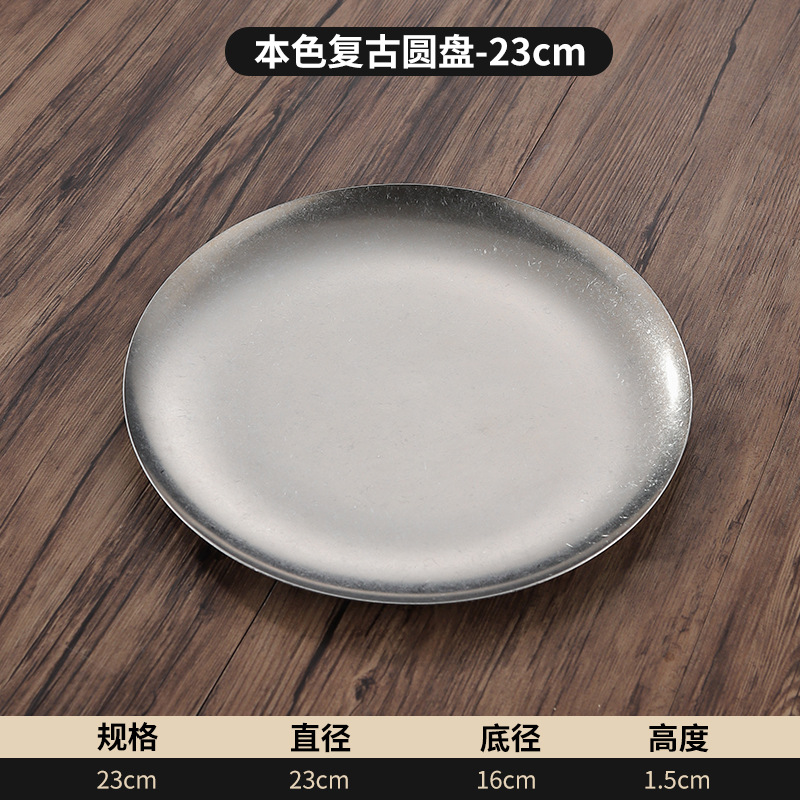 빈티지 스테인레스 스틸 플레이트 오래 된 미국 디너 플레이트 작은 디스크 얕은 플레이트 뼈 디저트 플레이트 플랫 플레이트 카페 케이크 플레이트스토어 가기