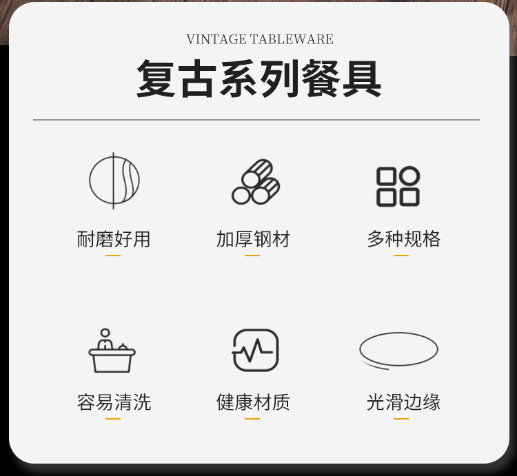• 19cm 직선형 바베큐 접시(레트로 골드)