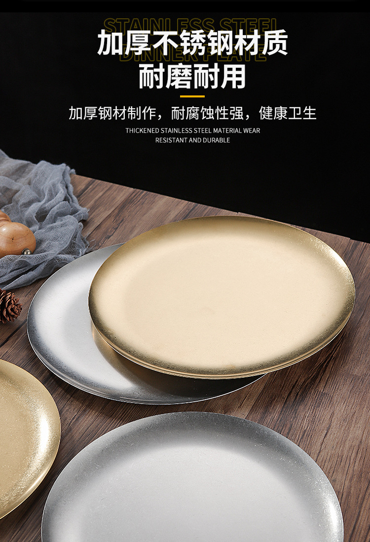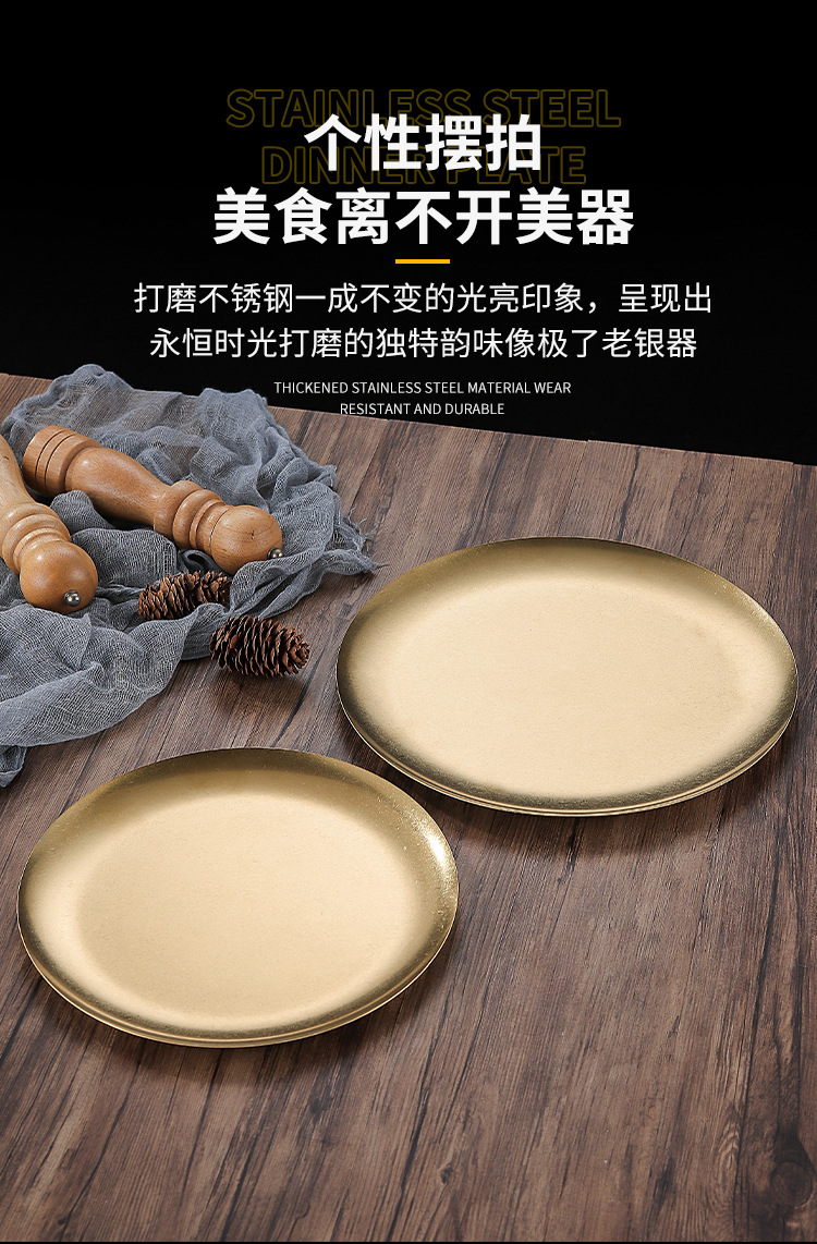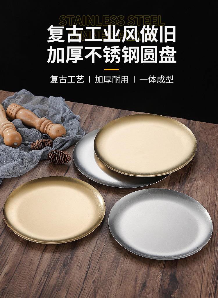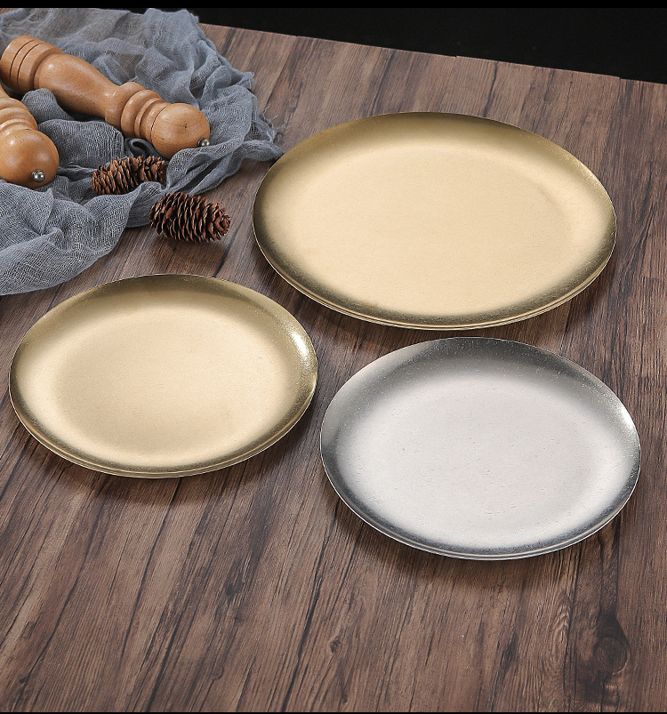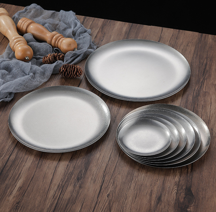 빈티지 스테인레스 스틸 플레이트 오래 된 미국 디너 플레이트 작은 디스크 얕은 플레이트 뼈 디저트 플레이트 플랫 플레이트 카페 케이크 플레이트
