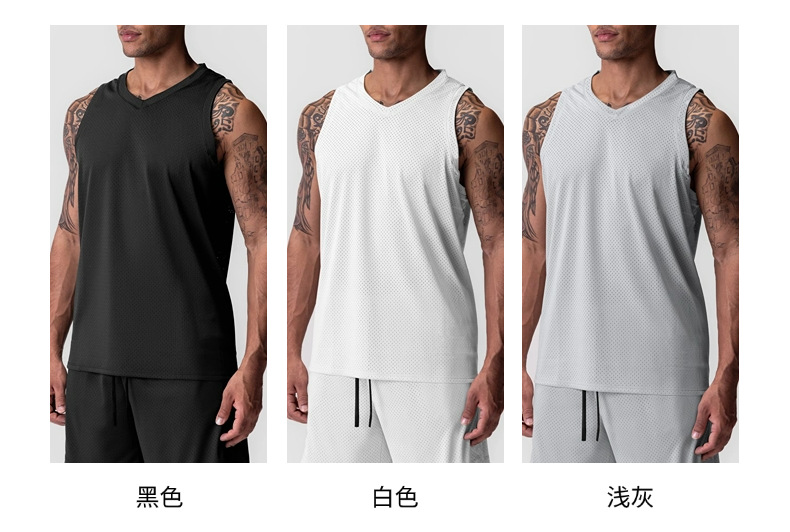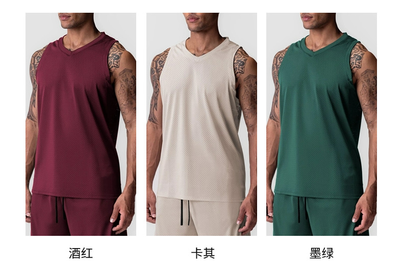 국경 간 새로운 경량 스포츠 피트니스 조끼 남자의 빠른 건조 통기성 V 넥 농구 조끼 트렌디 한 민소매 양복 조끼