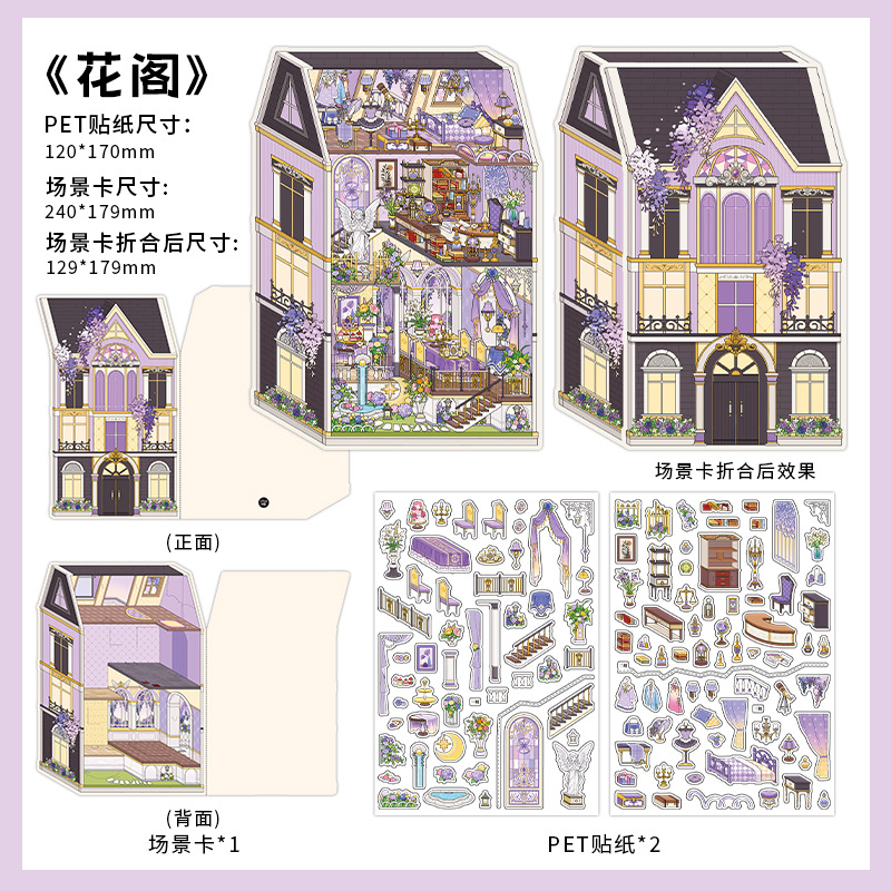 인페렐. 나 2 층 조경 스티커 내 오두막 시리즈 미니어처 3 차원 컷 프리 장면 손 계정 조용한 책