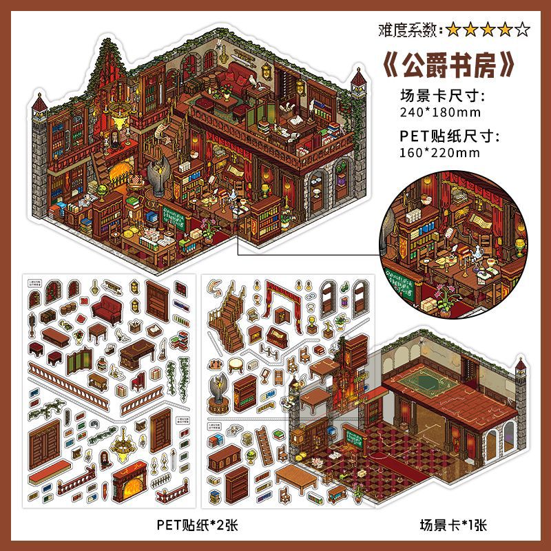 인페렐. 나 2 층 조경 스티커 내 오두막 시리즈 미니어처 3 차원 컷 프리 장면 손 계정 조용한 책스토어 가기