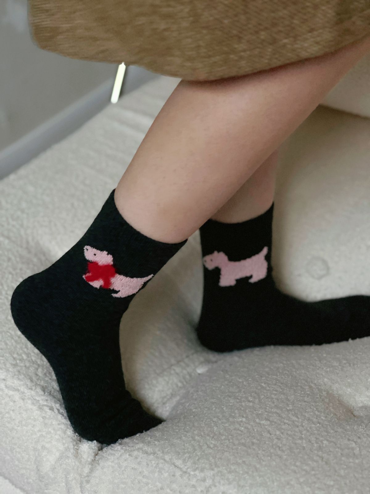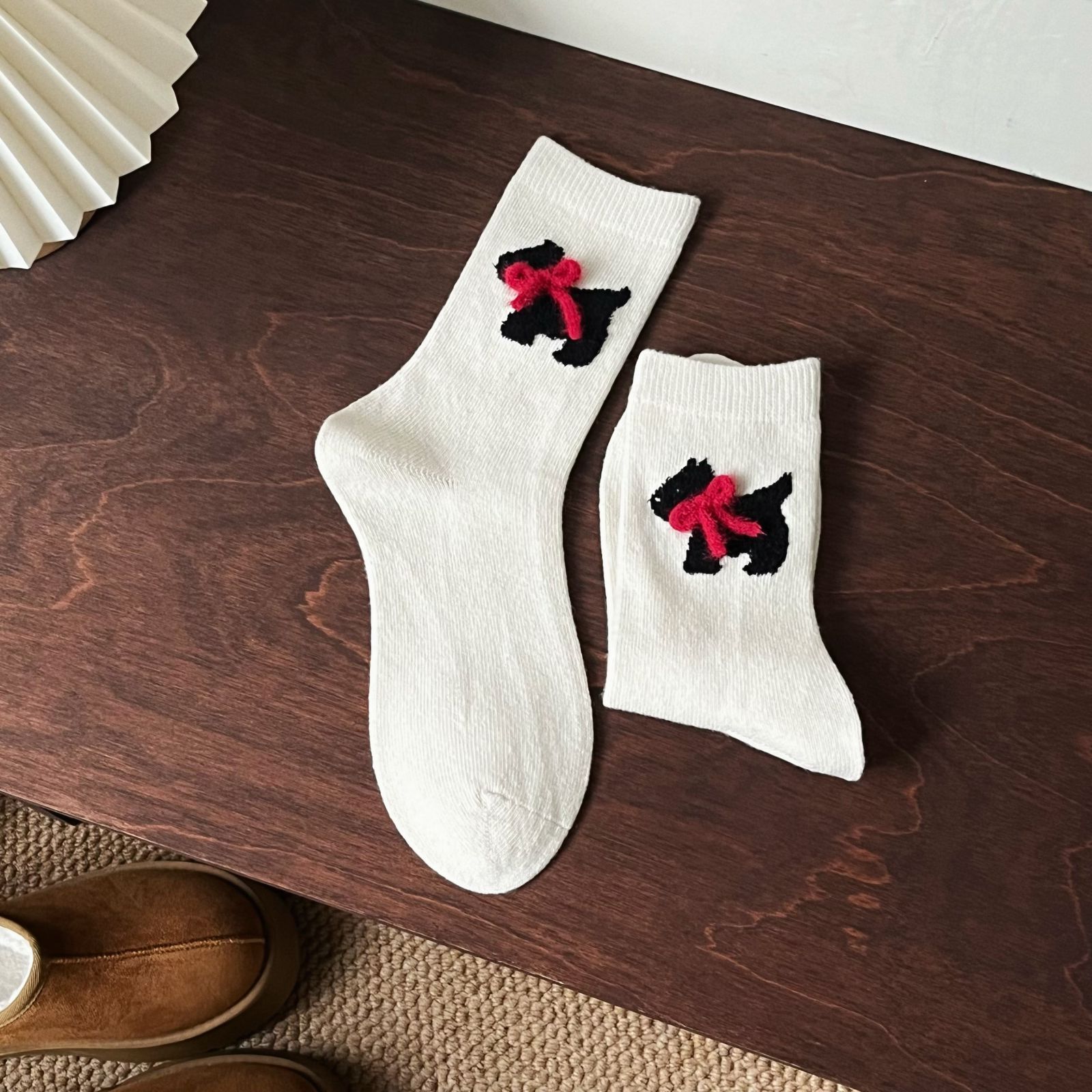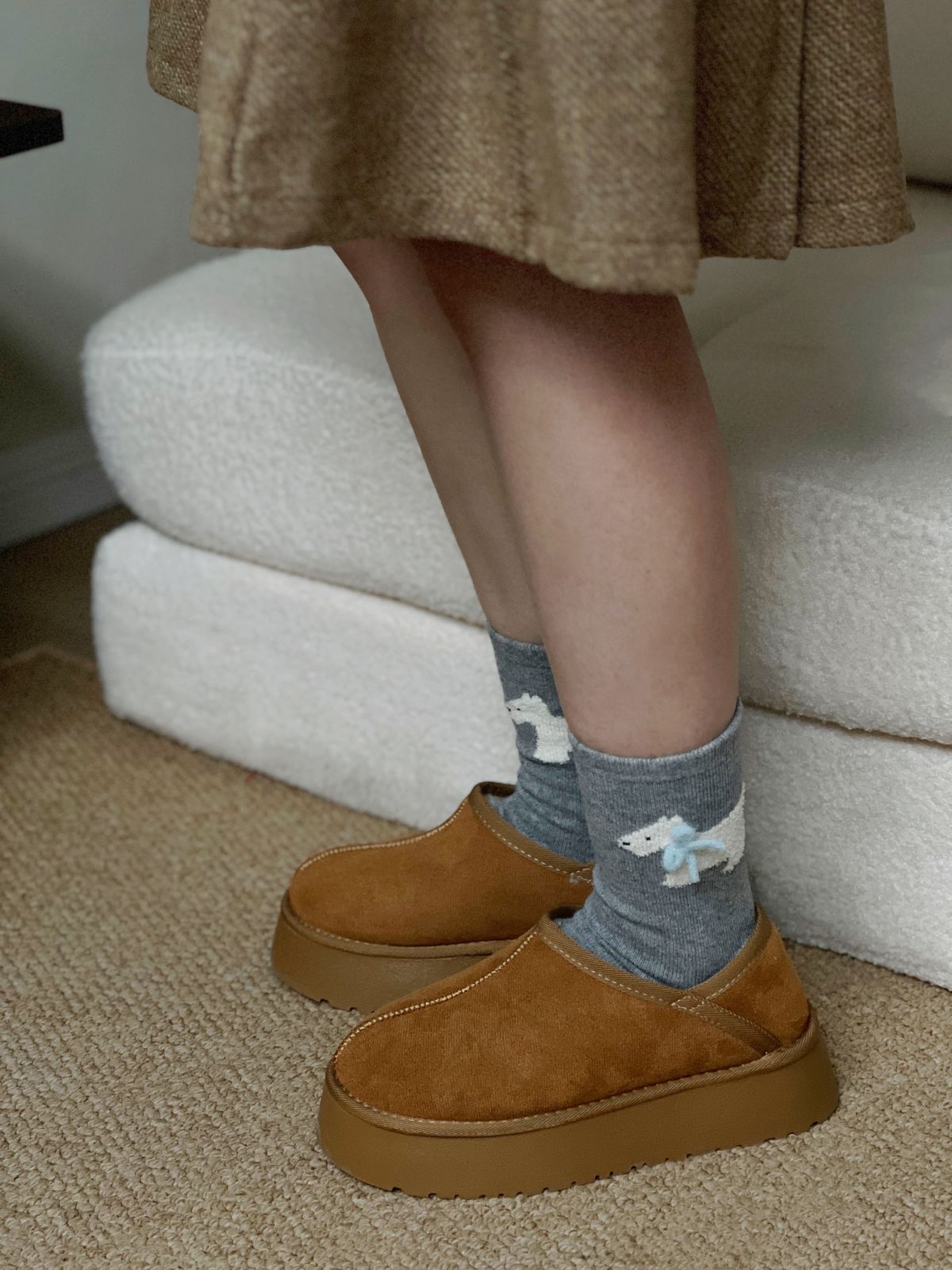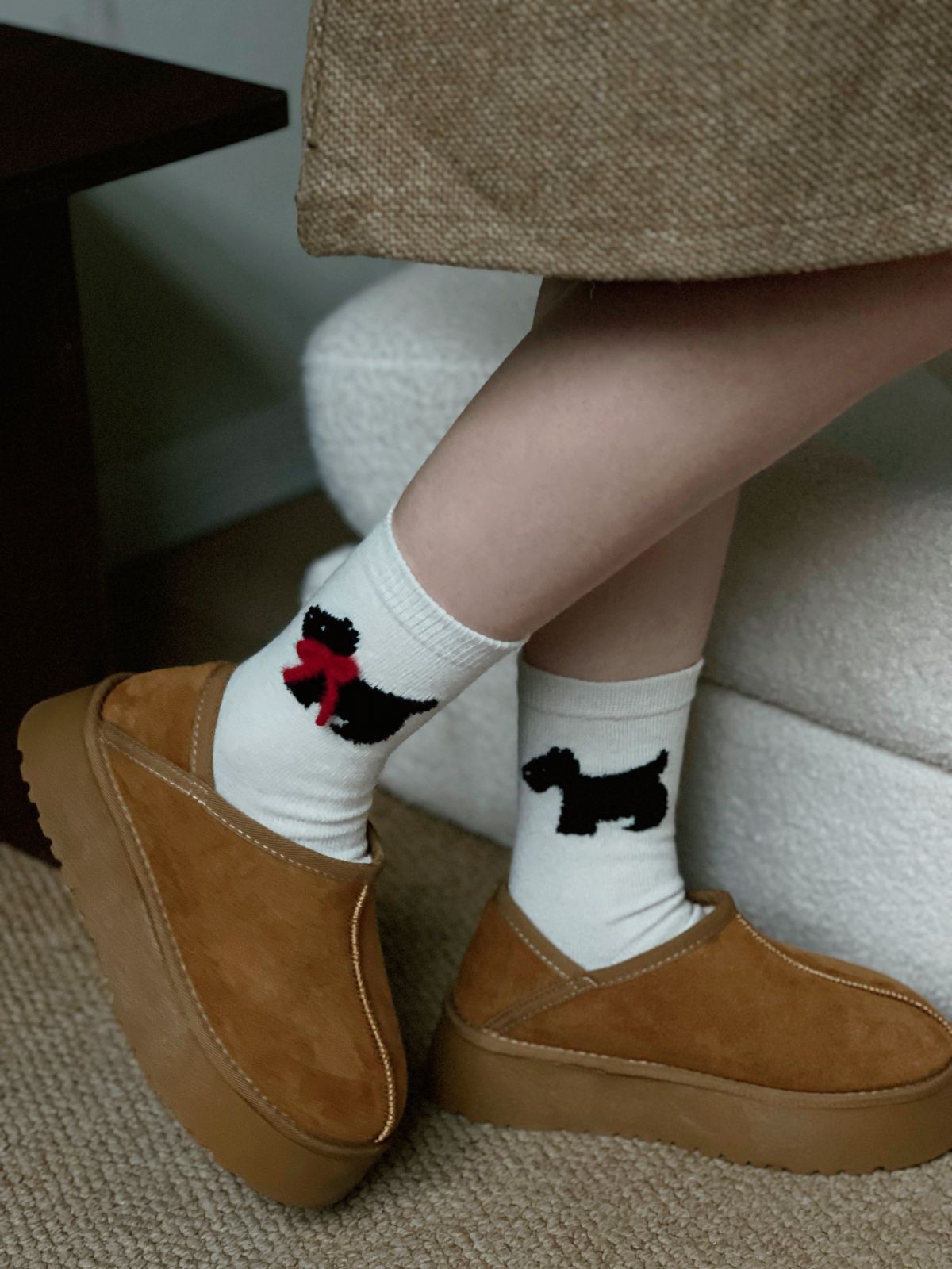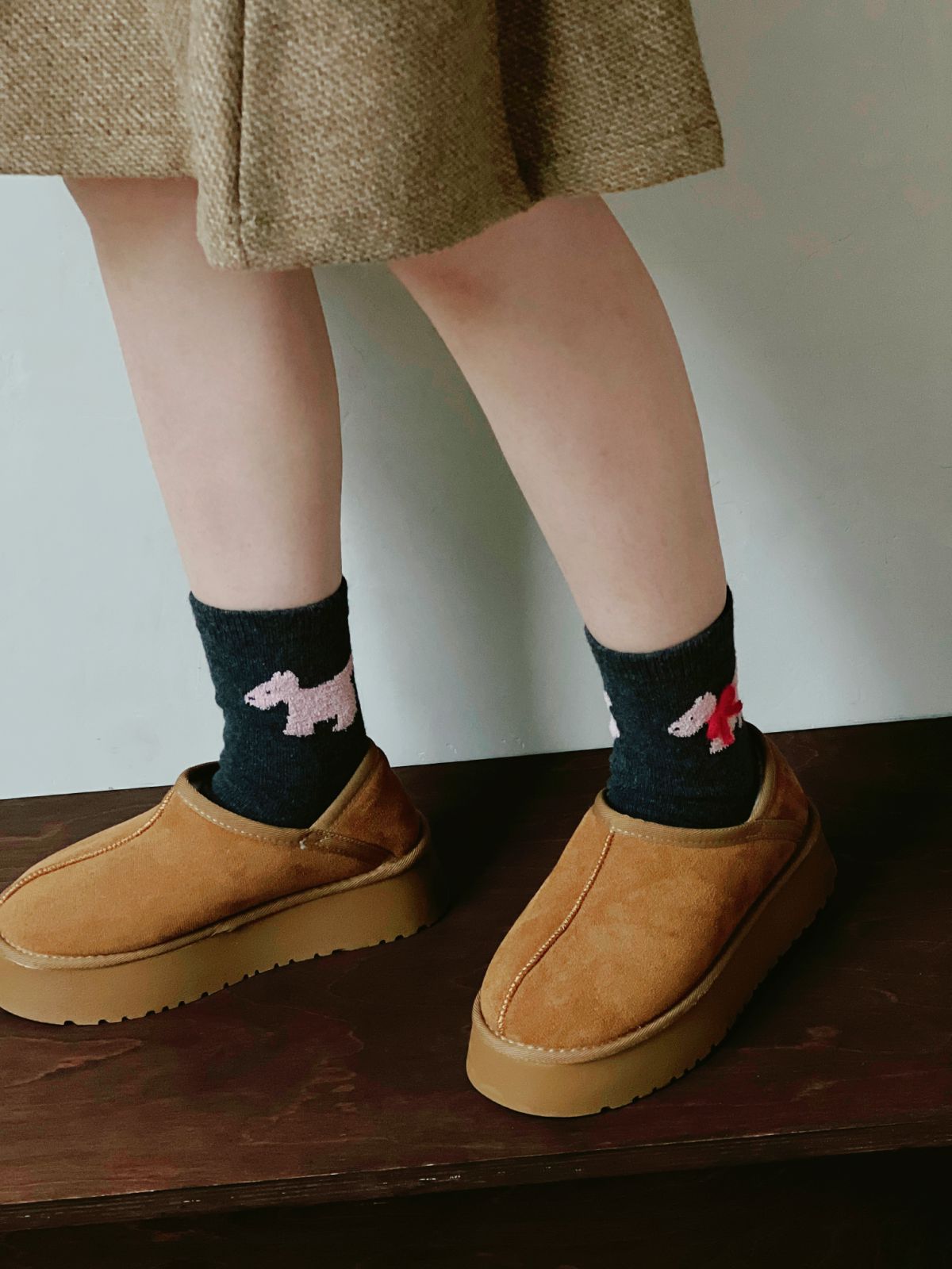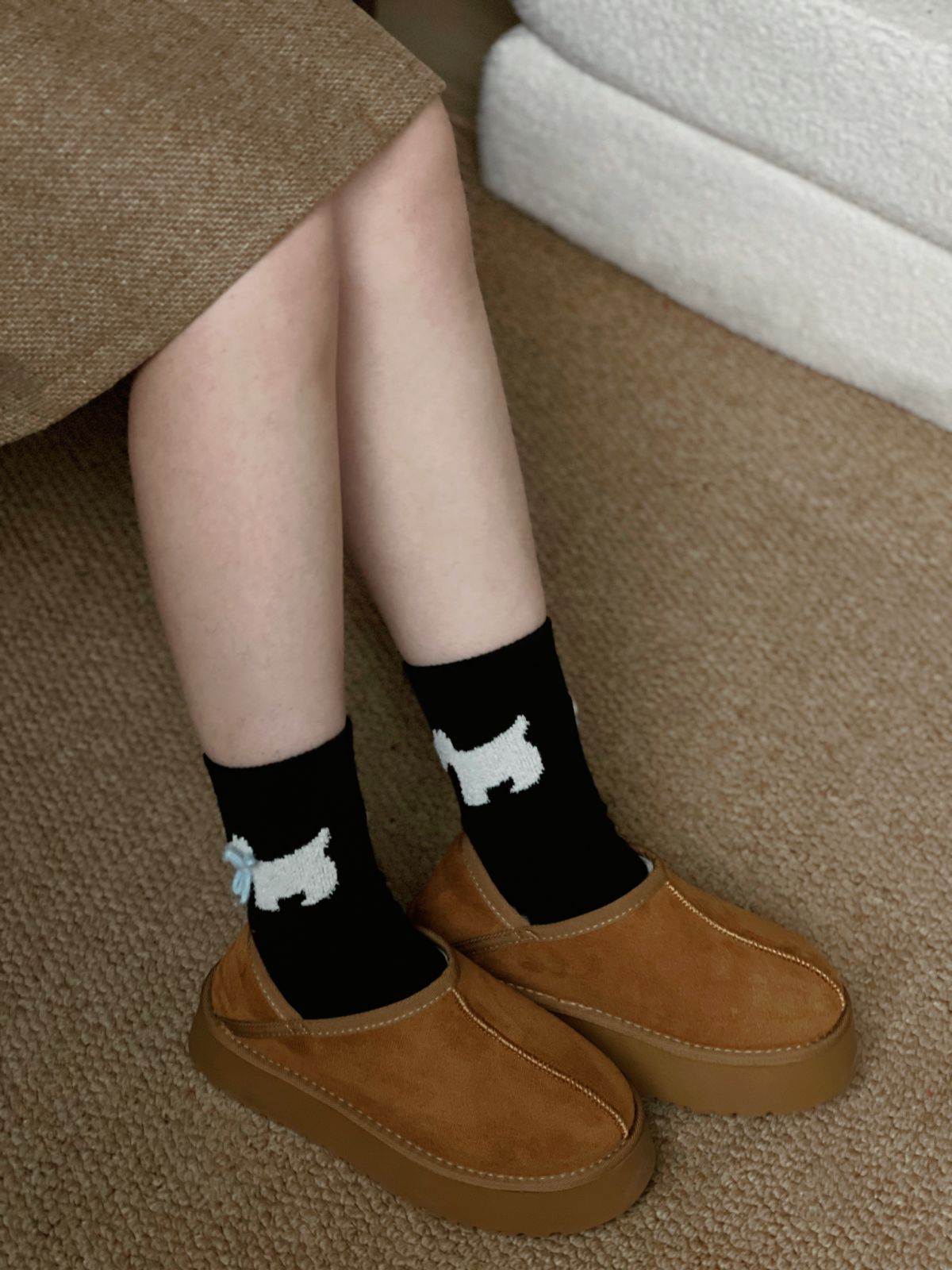 가을과 겨울 회색 양모 따뜻한 양말 한국 스타일 만화 강아지 3 차원 활 두꺼운 미드 튜브 양말