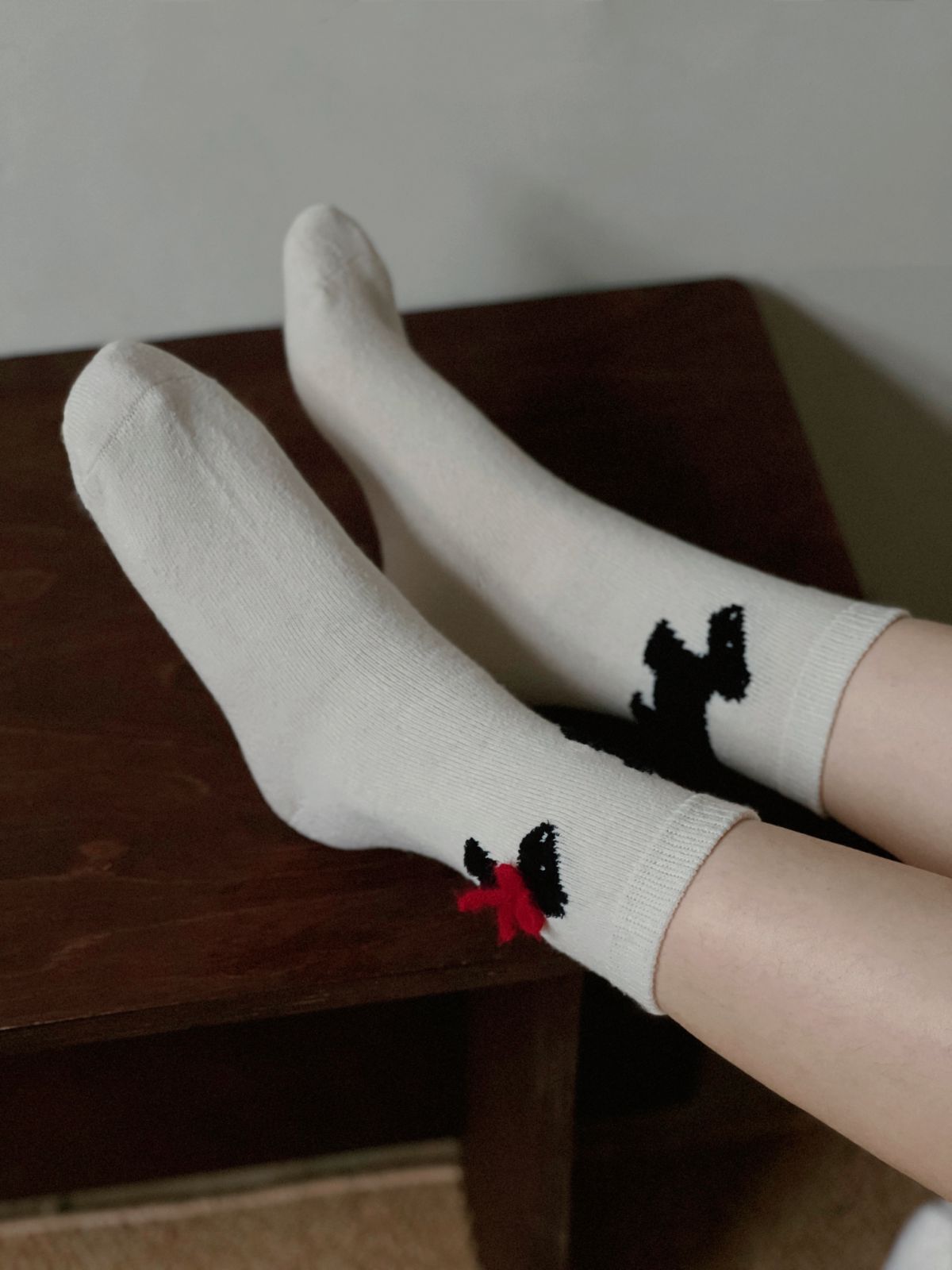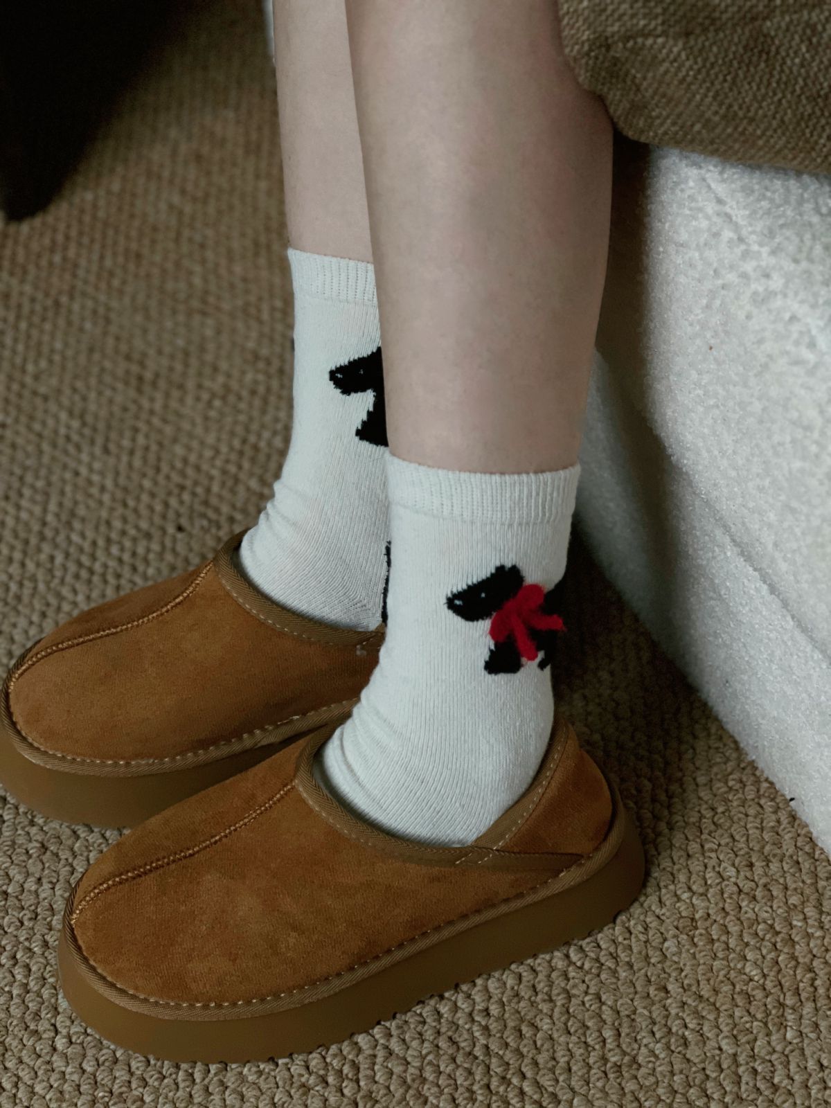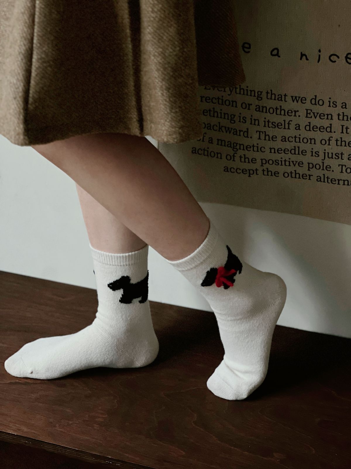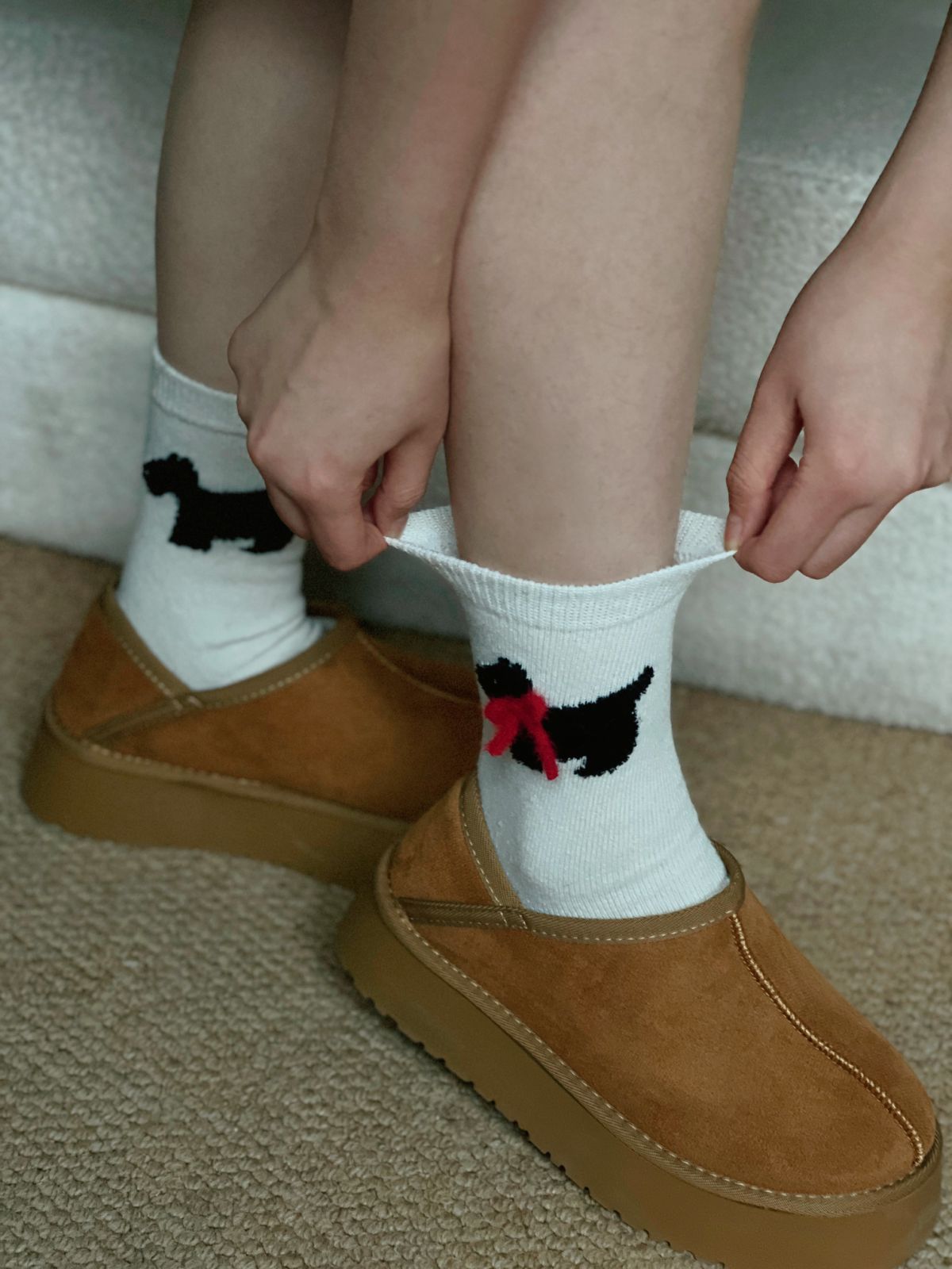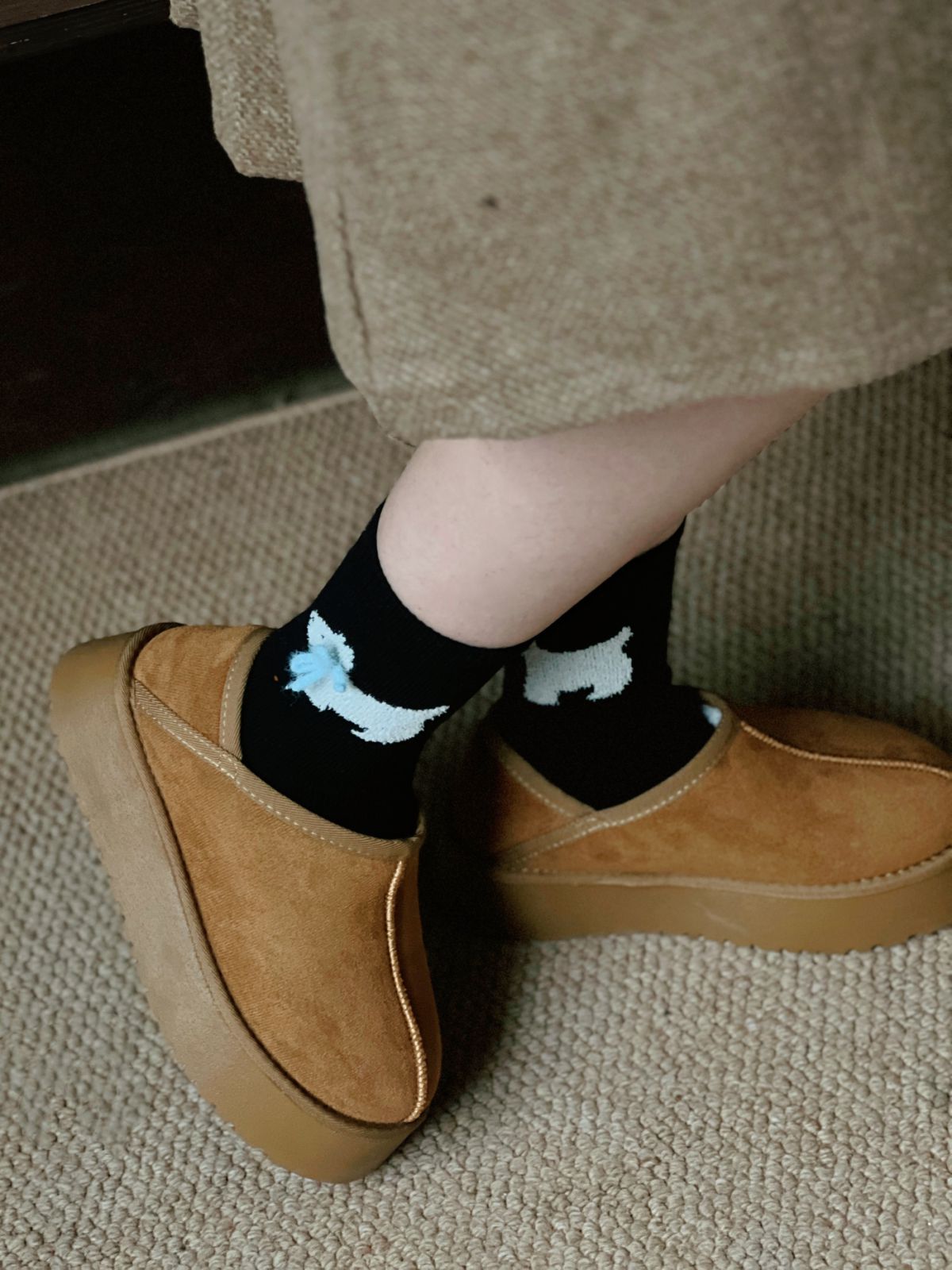가을과 겨울 회색 양모 따뜻한 양말 한국 스타일 만화 강아지 3 차원 활 두꺼운 미드 튜브 양말