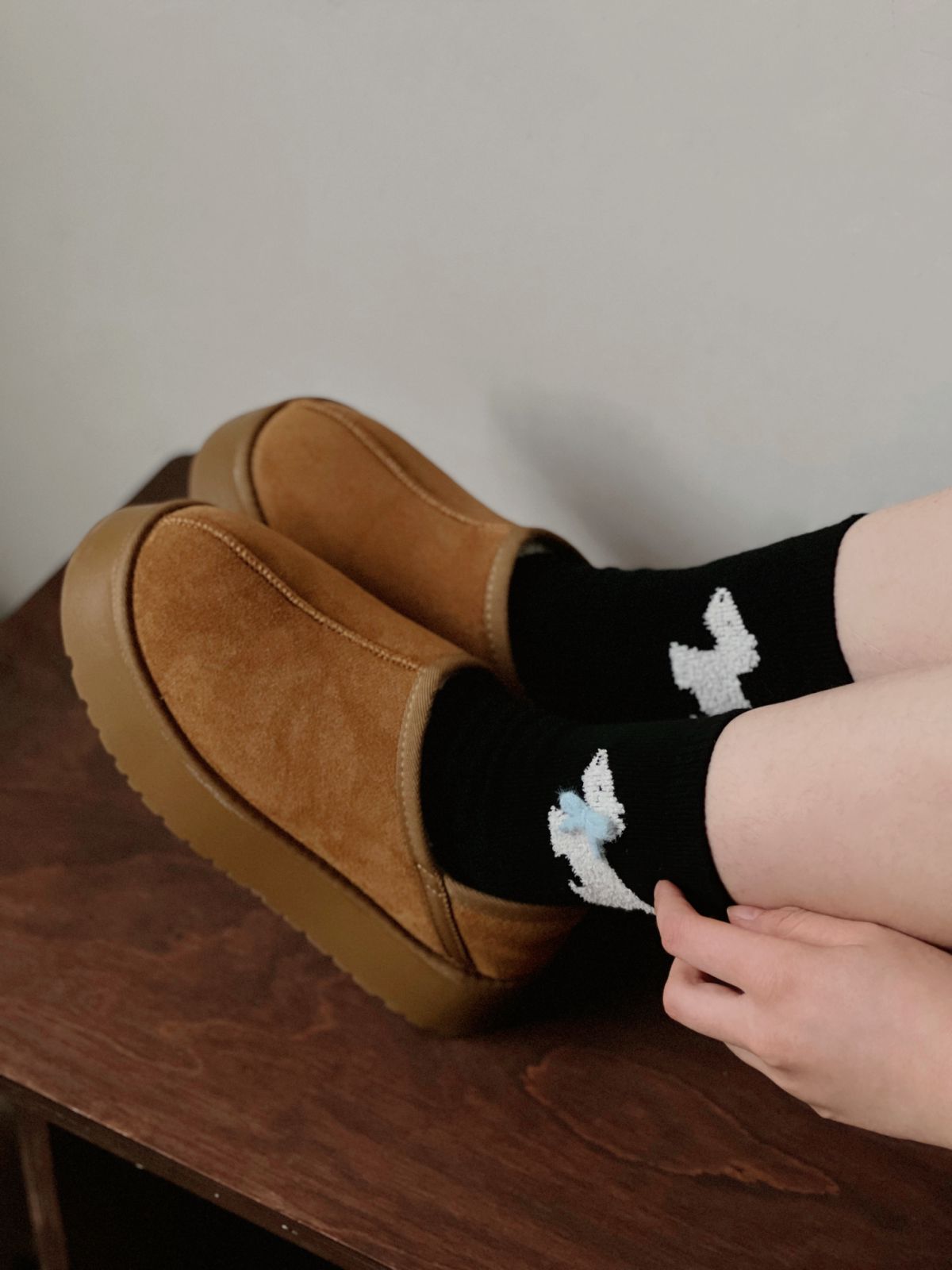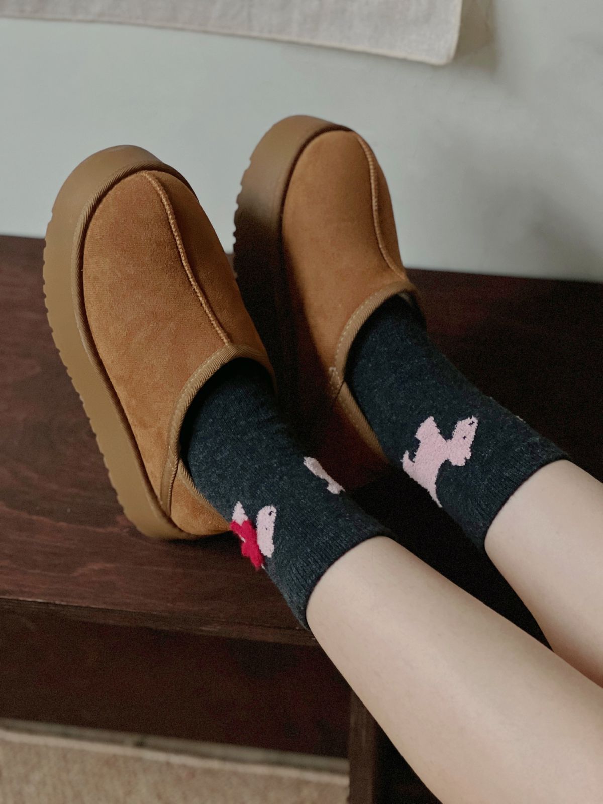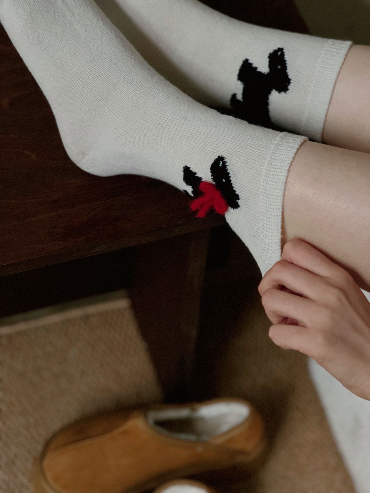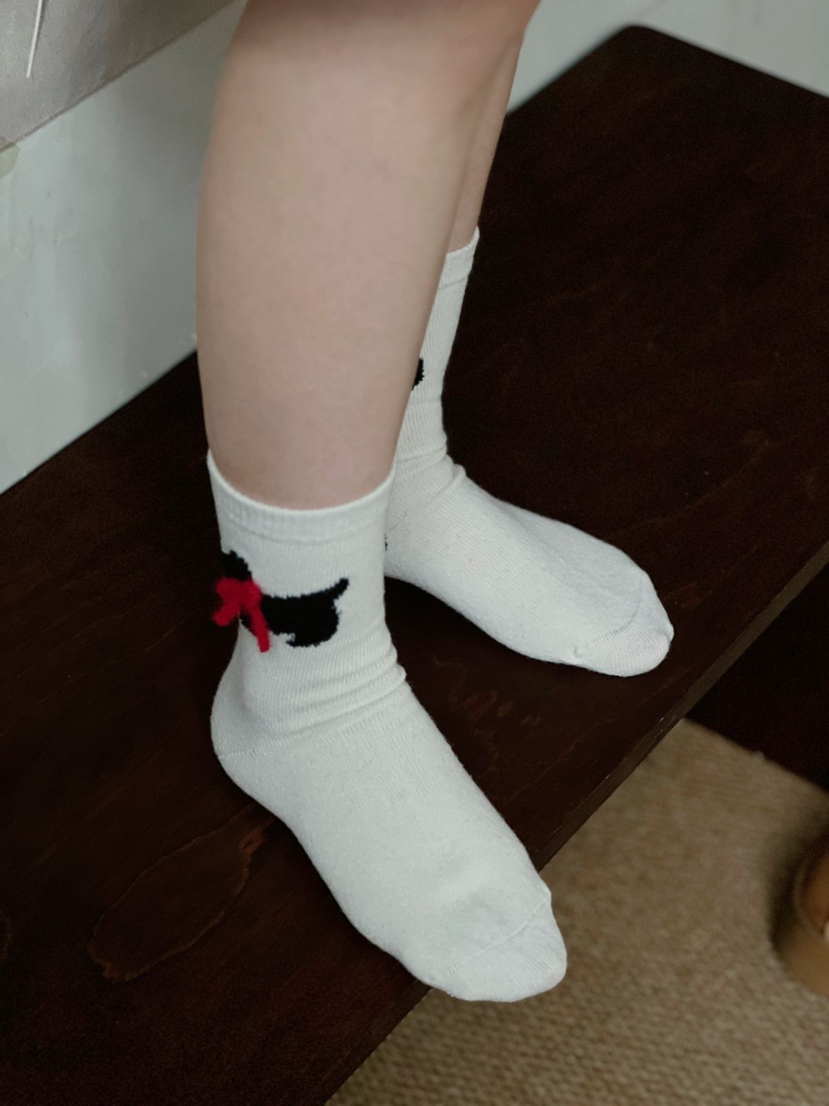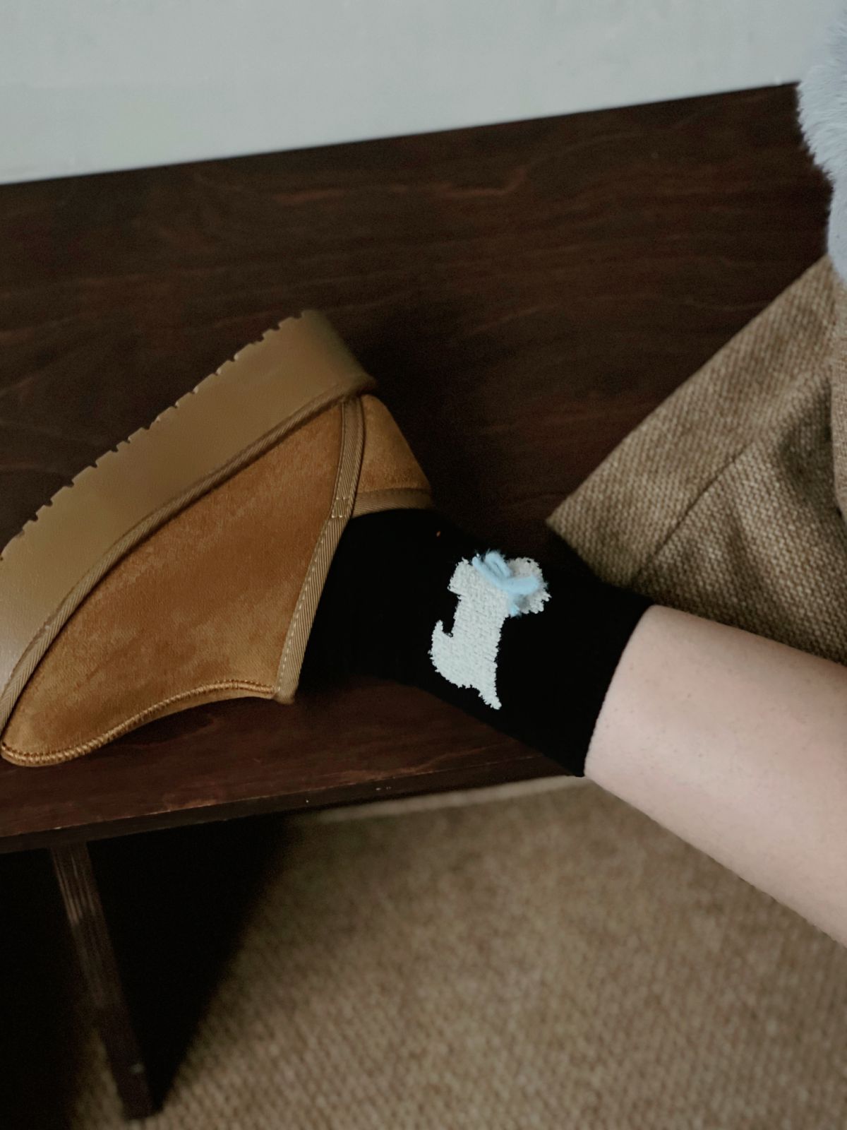 가을과 겨울 회색 양모 따뜻한 양말 한국 스타일 만화 강아지 3 차원 활 두꺼운 미드 튜브 양말