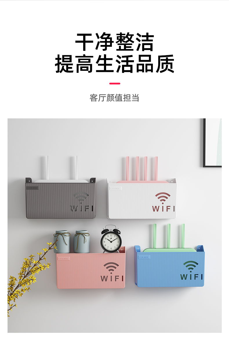 라우터 스토리지 박스 펀치없는 벽 장착 고정 걸이 스토리지 와이파이 광학 고양이 TV 셋톱 박스스토어 가기