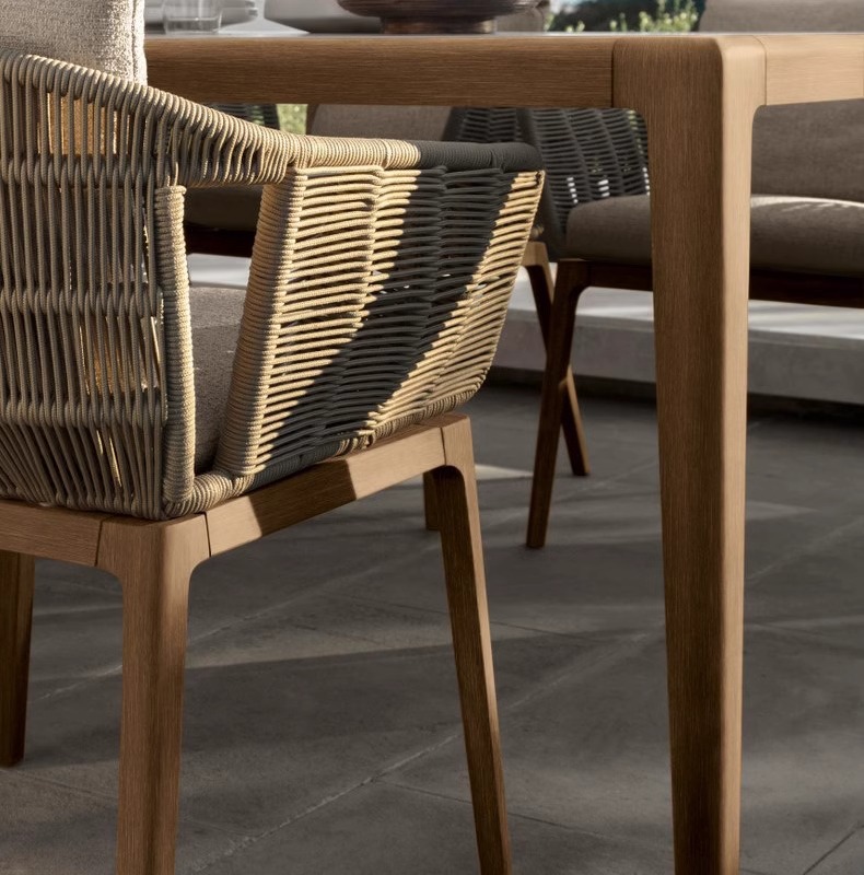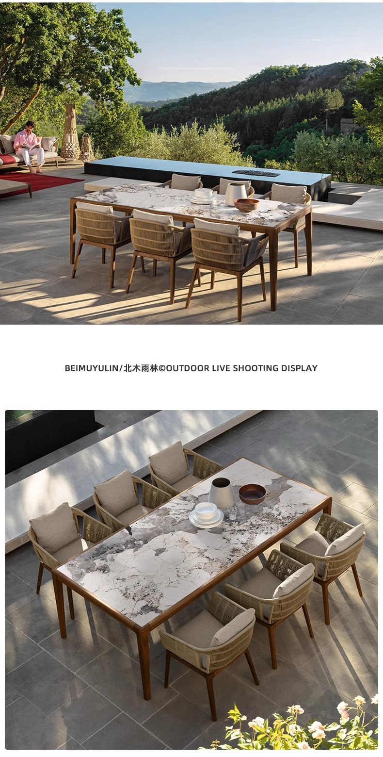 야외 등나무 테이블과 의자 빌라 안뜰 레저 등나무 의자 간단한 정원 의자 중국 티크 록 보드 식탁 및 의자 조합
