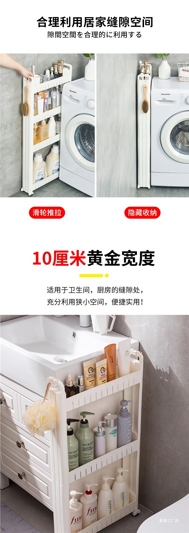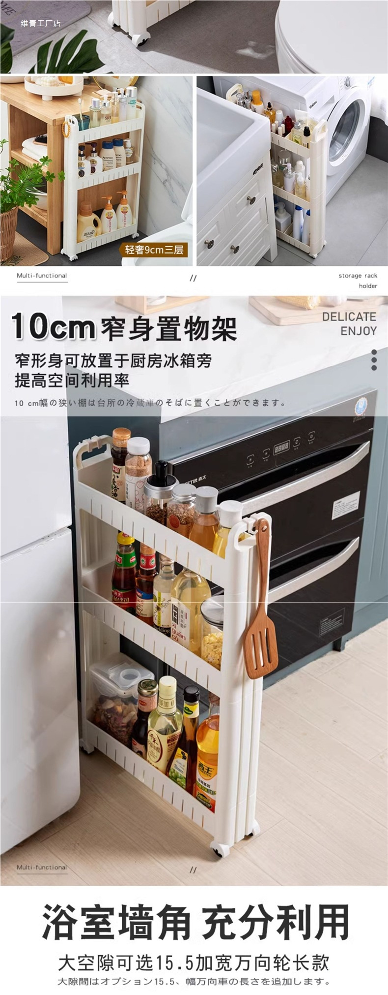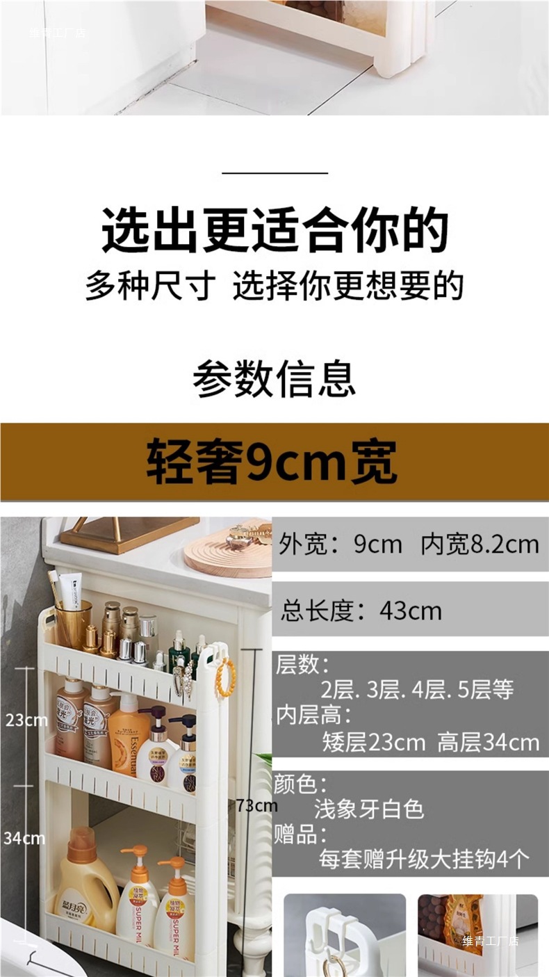 8/9/10 슈퍼 좁은 갭 캐비닛 냉장고 사이드 주방 보관 매우 좁은 스토리지 갭 스토리지 랙 도어 카트 Weiqing스토어 가기