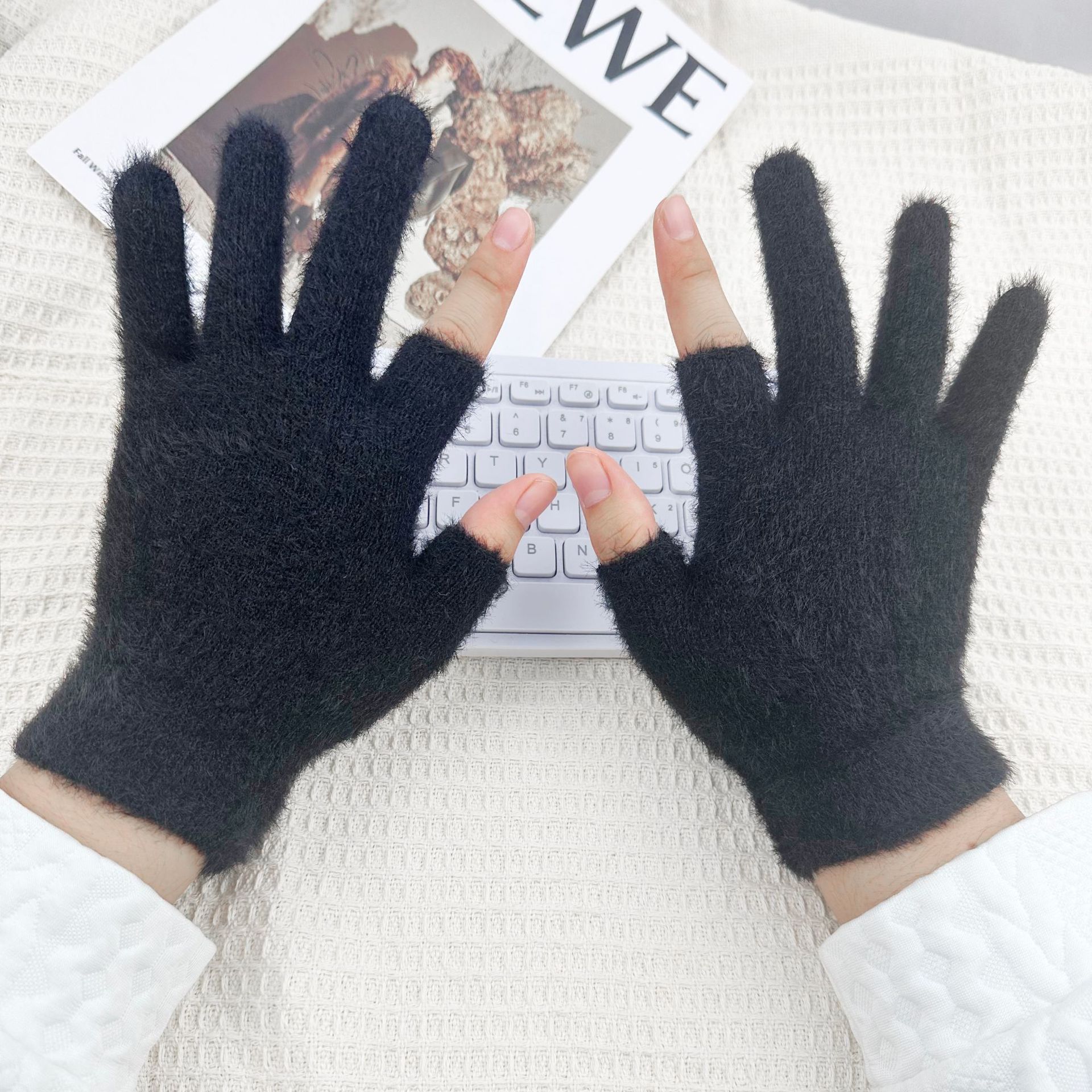 두 손가락 따뜻한 장갑 가을, 겨울 학생 장갑 쓰기 및 사이클링 핑거리스 장갑 솔리드 컬러 터치 스크린 모조 밍크 장갑스토어 가기
