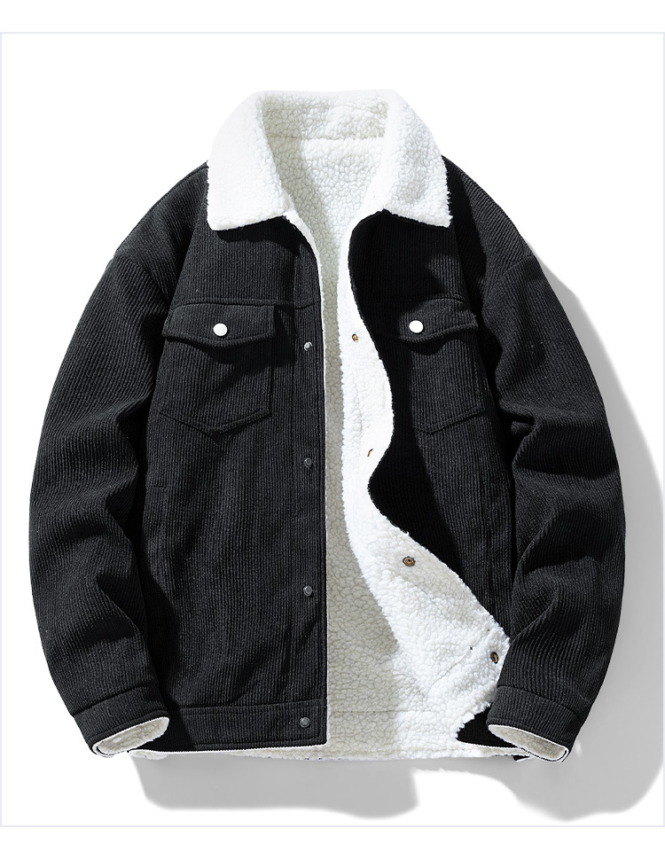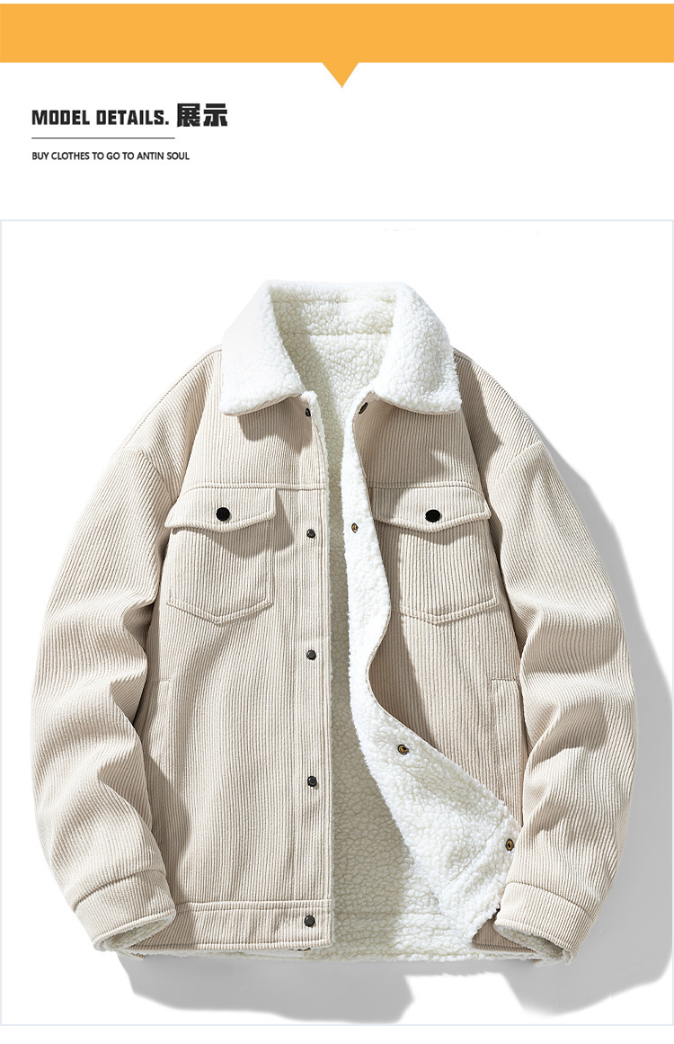 남성용 겨울 두꺼운 양고기 양털 코튼 코트 캐주얼 빈티지 옷깃 툴링 코튼 코트 재킷 남성용 따뜻한 트렌디 브랜드 탑스토어 가기
