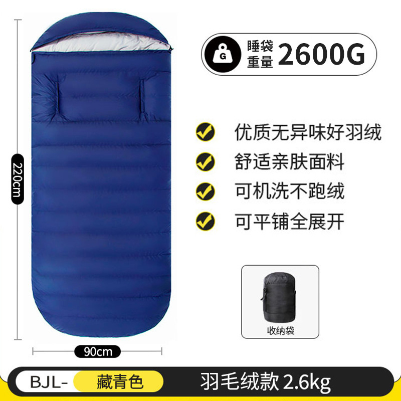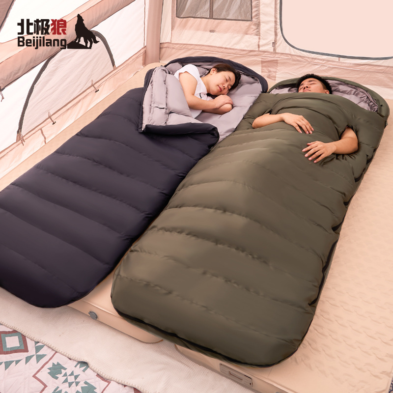 야외용 깃털 침낭, 손을 뺄 수 있는 두꺼운 방한 침낭, 내한성 겨울 캠핑용 계란형 넓은 성인용 침낭스토어 가기