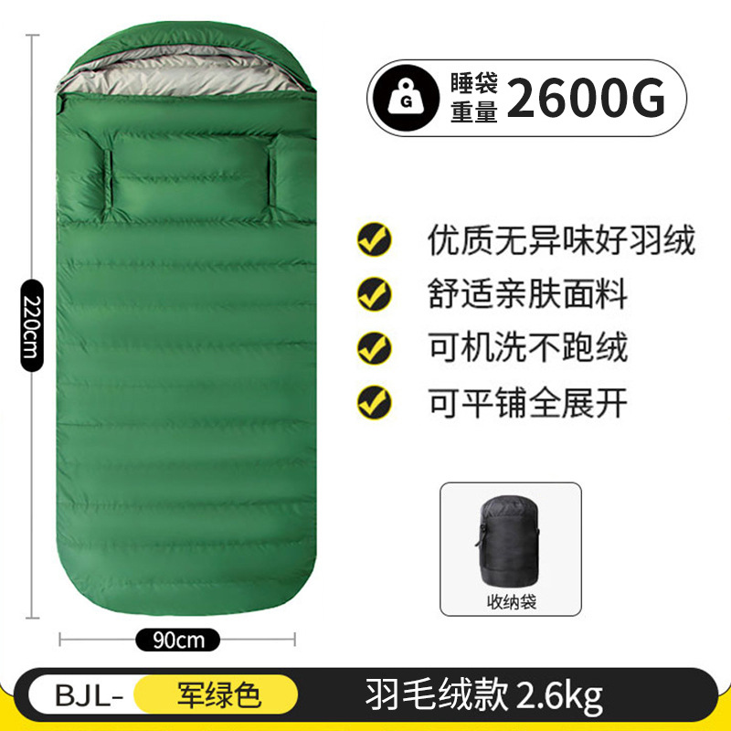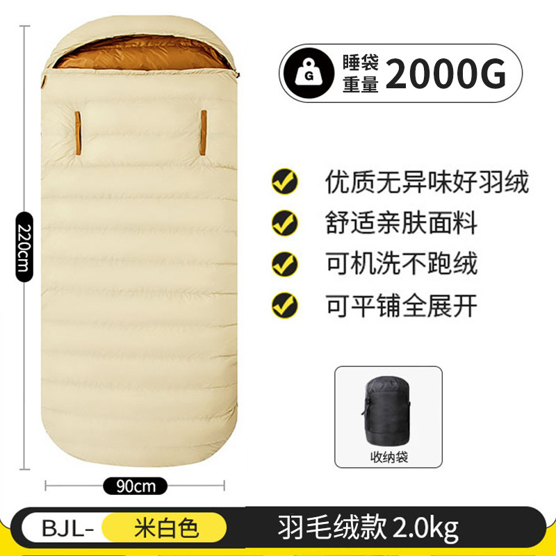 야외용 깃털 침낭, 손을 뺄 수 있는 두꺼운 방한 침낭, 내한성 겨울 캠핑용 계란형 넓은 성인용 침낭
