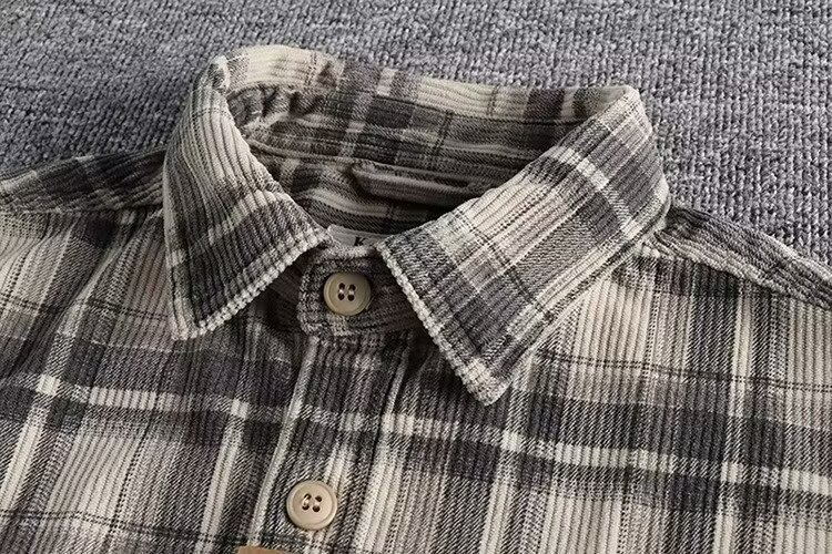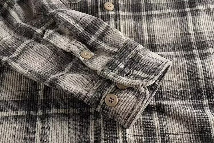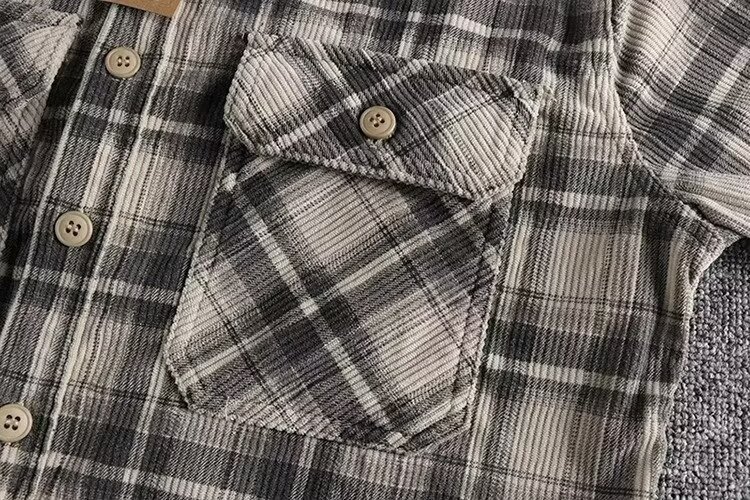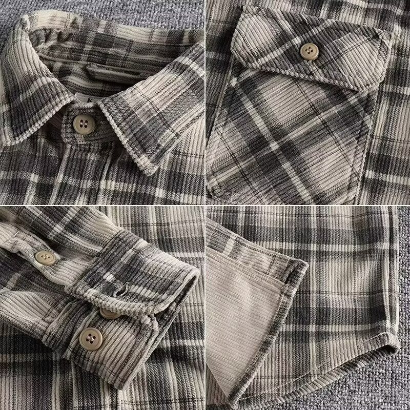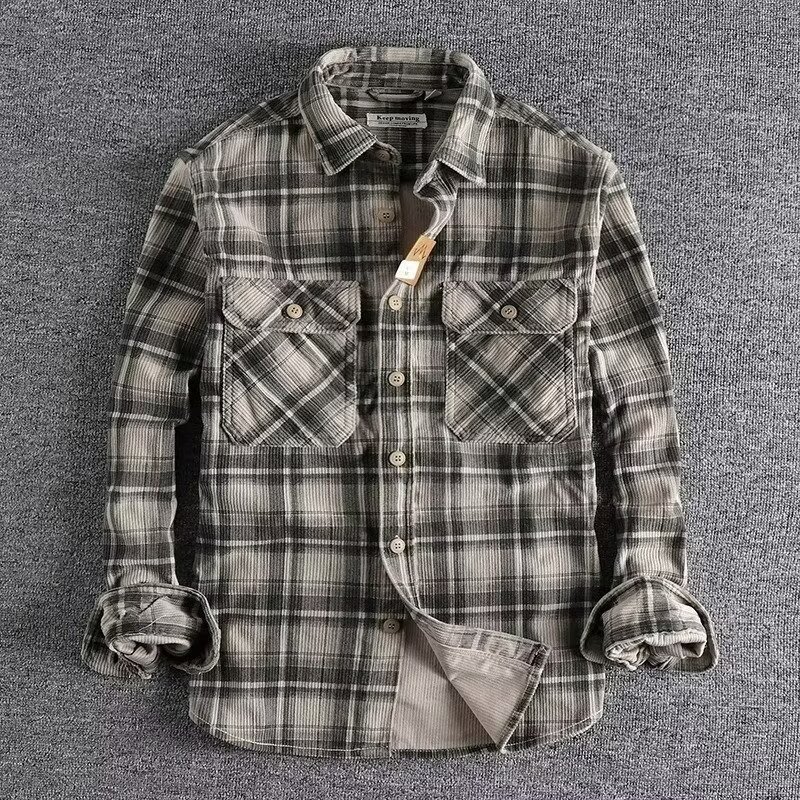 24 미국 카지 레트로 봄과 가을 남자 클래식 격자 무늬 긴 소매 셔츠 세탁 코듀로이 편안한 캐주얼 자켓