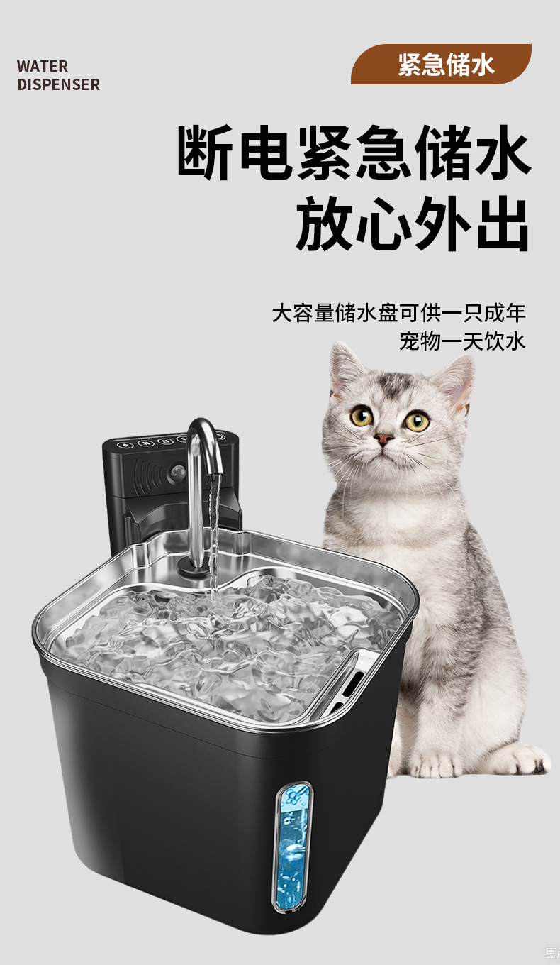 아마존 애완 동물 물 디스펜서 스테인레스 스틸 스마트 고양이 분수 물 공급 자동 고양이 마시는 애완 동물 용품 제조 업체스토어 가기