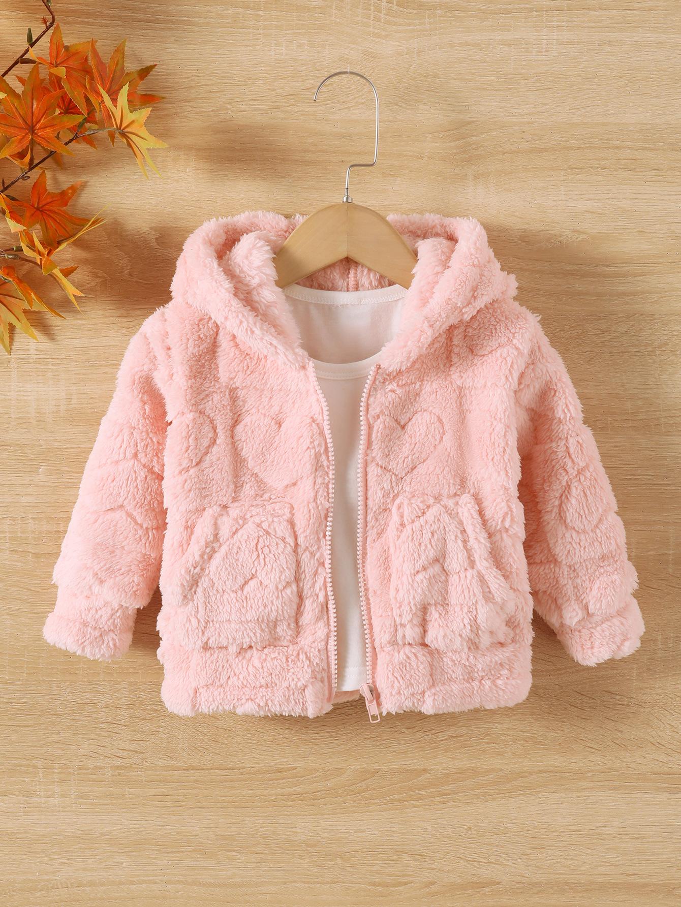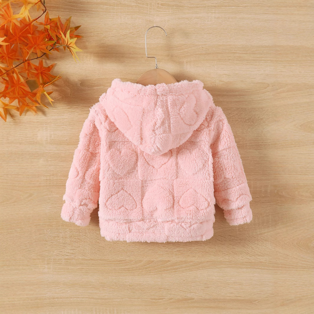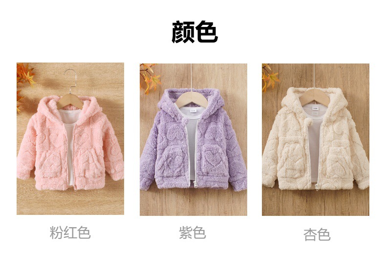 소녀 솔리드 컬러 두꺼운 봉제 귀여운 하트 모양의 긴팔 지퍼 후드 코트스토어 가기