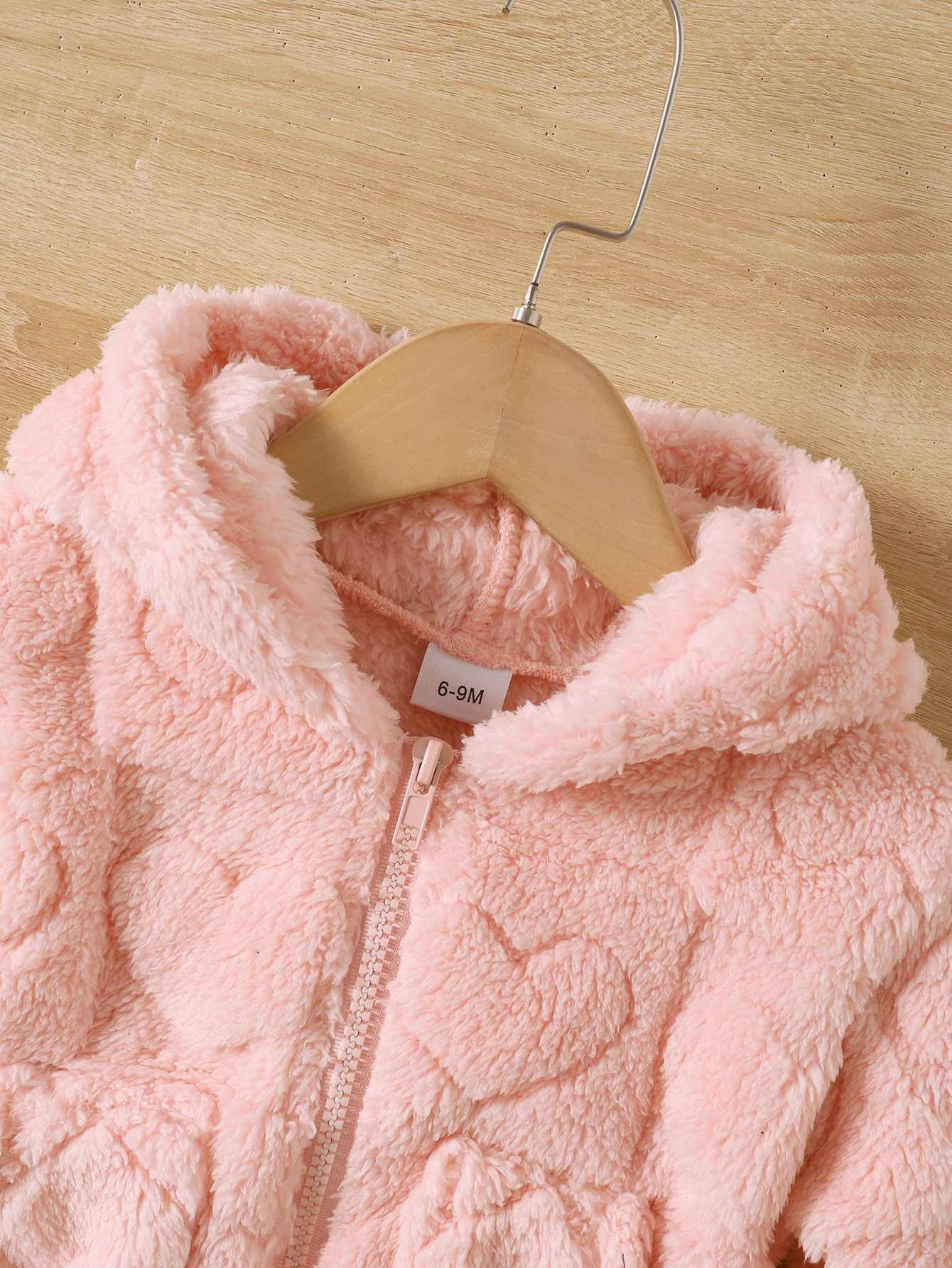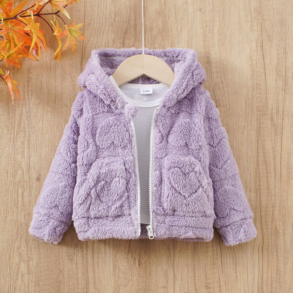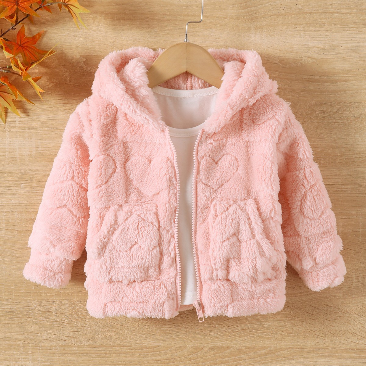소녀 솔리드 컬러 두꺼운 봉제 귀여운 하트 모양의 긴팔 지퍼 후드 코트스토어 가기