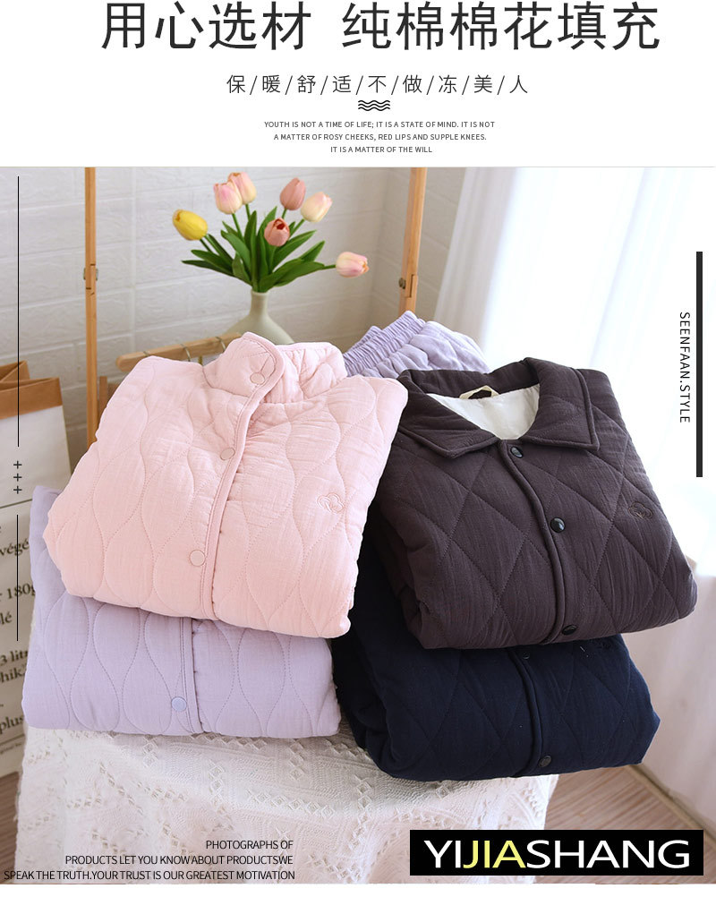 가을과 겨울 새로운 두꺼운 면화 애호가 잠옷 여성면 패딩 겨울 따뜻한 간단한 가정 의류 세트 도매스토어 가기