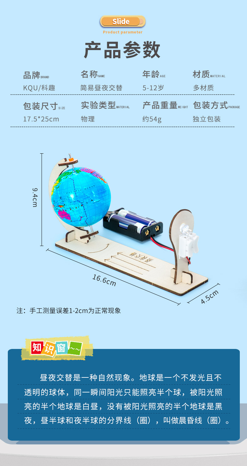 과학 실험 diy 낮과 밤 대체 데모 모델 과학 기술 작은 생산 학생 어린이 수제 재료 패키지 세트