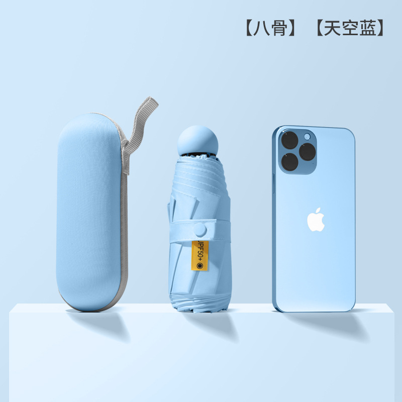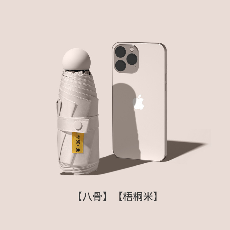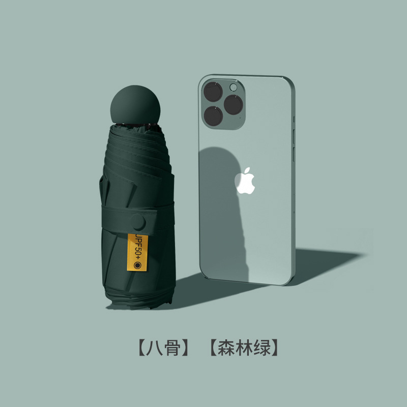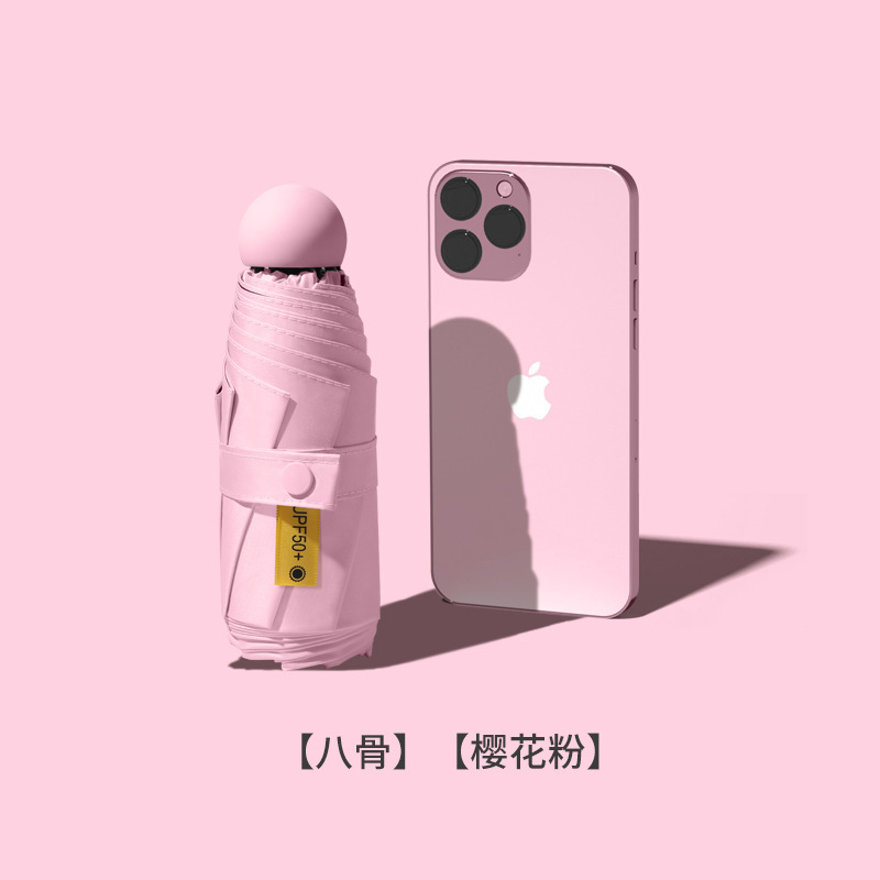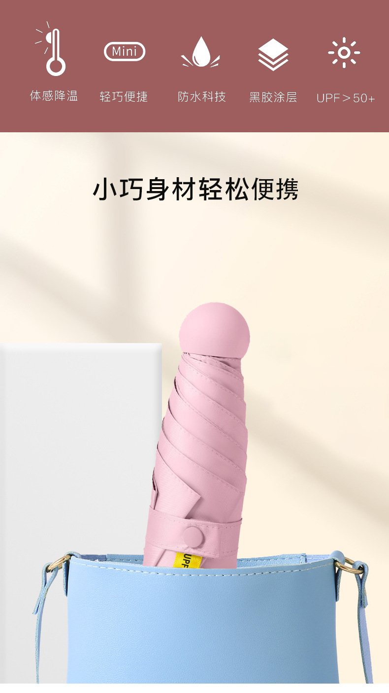 여성을위한 도매 독점 태양 보호 태양 우산 비 또는 빛 컴팩트 휴대용 50% off 미니 블랙 캡슐 광고 우산스토어 가기