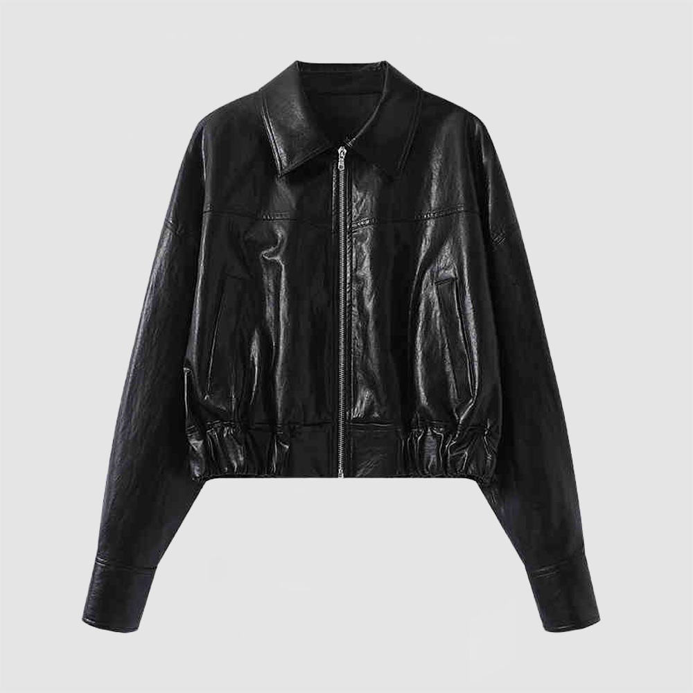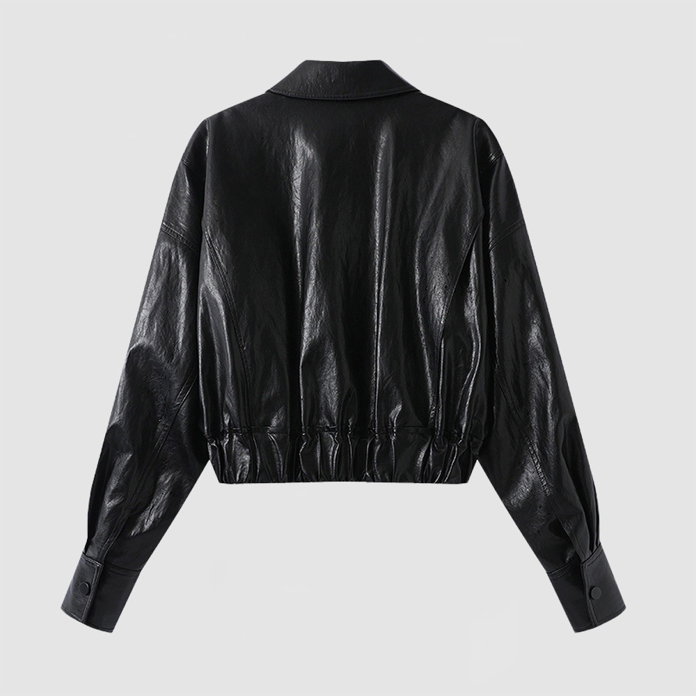 2025 봄 새로운 여성의 간단한 느슨한 옷깃 오토바이 스타일 폭격기 재킷 PU 가죽 코트 50121022