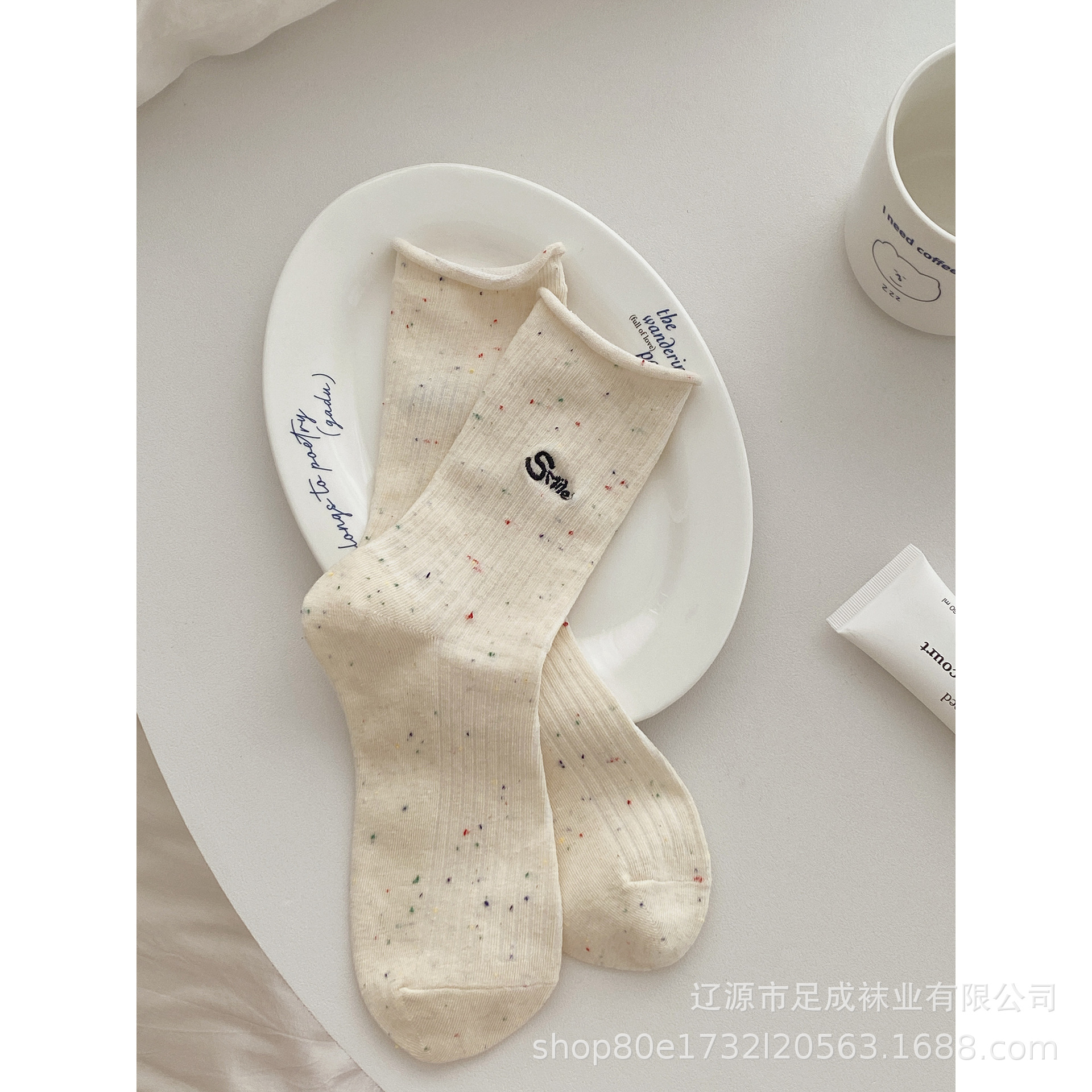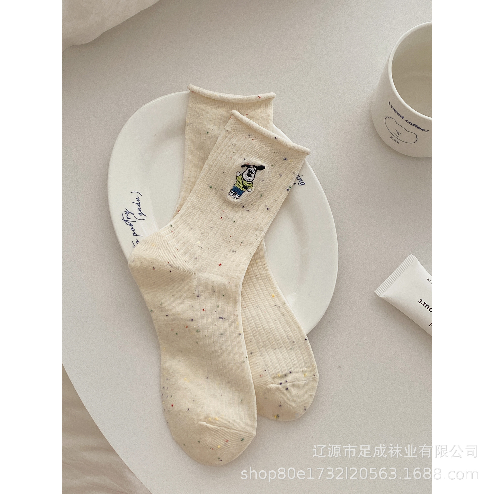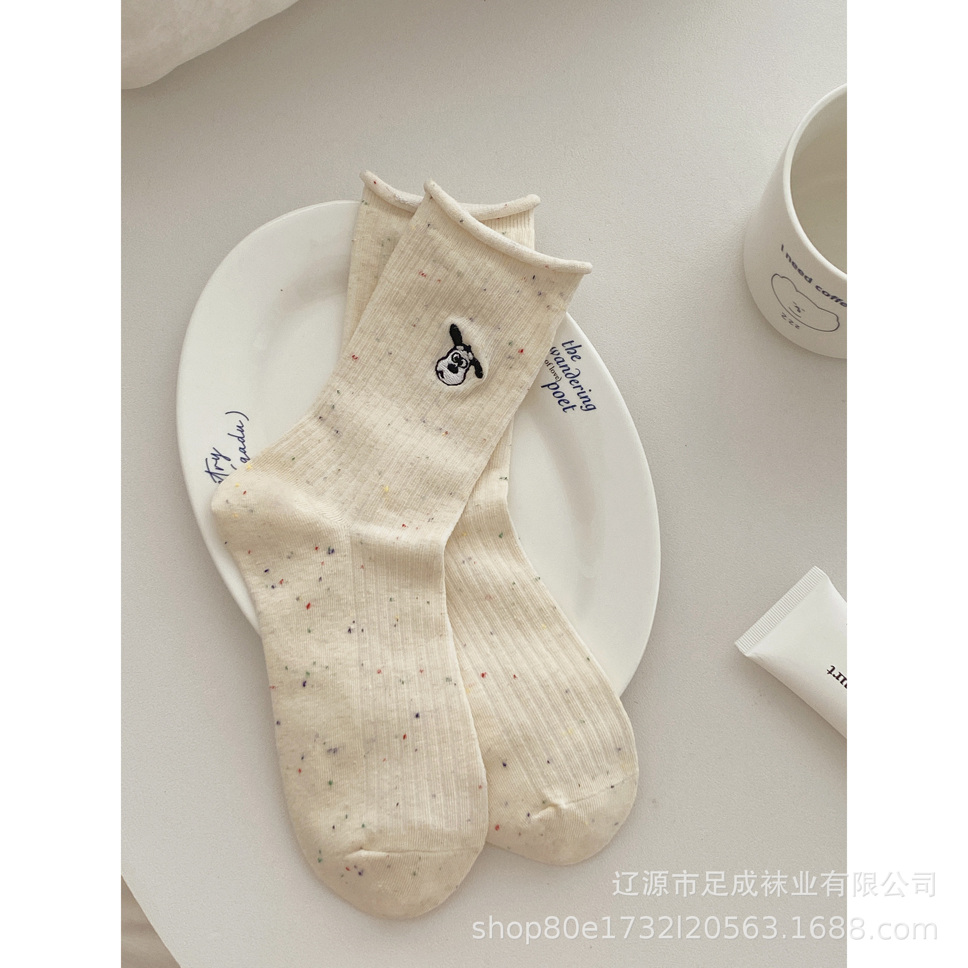 코튼 강아지 수 놓은 미드 튜브 양말 어린이 Ins 유행 가을 및 겨울 포인트 원사 만화 컬 여성용 하이 튜브 스택 양말스토어 가기
