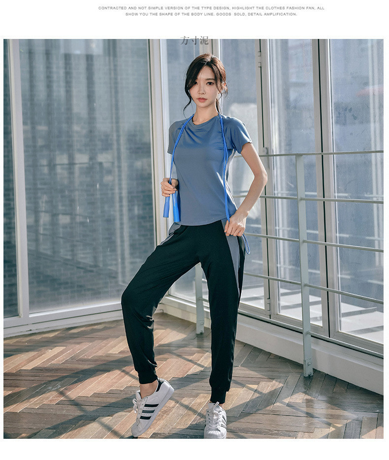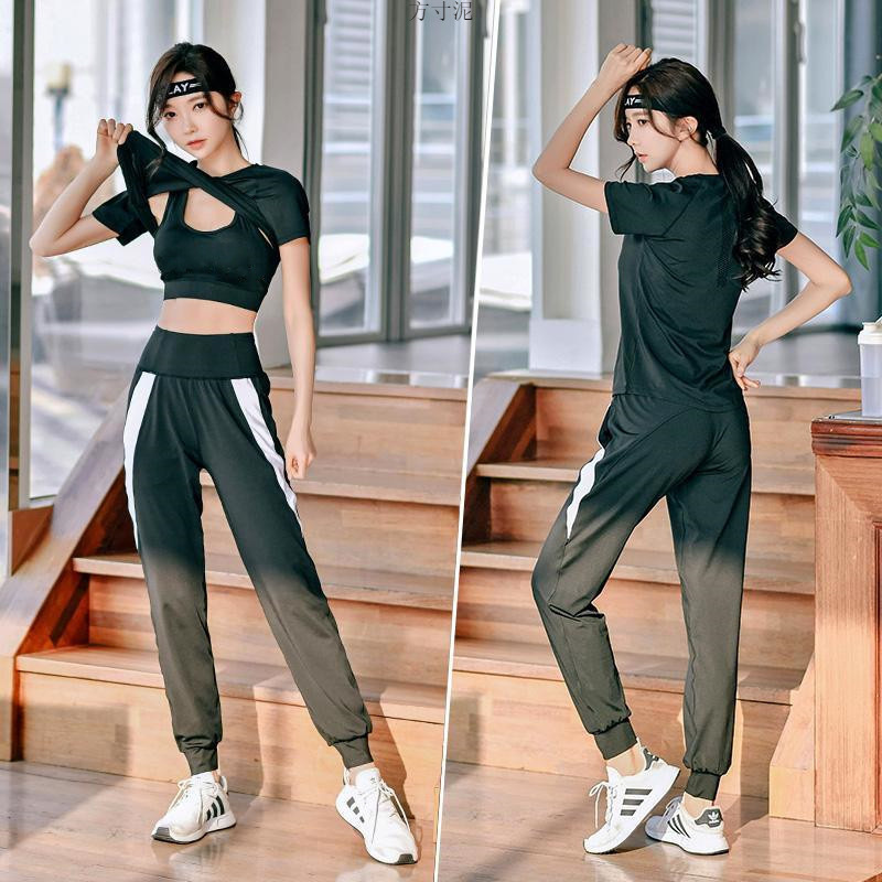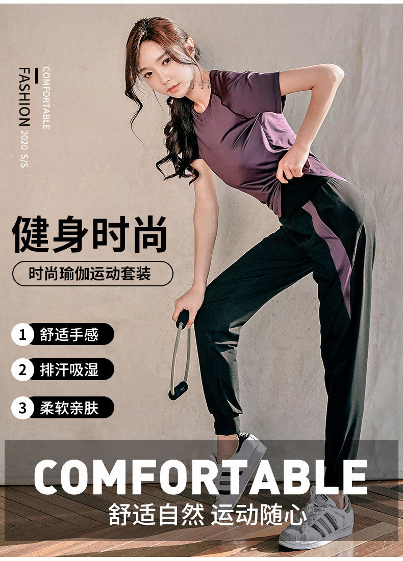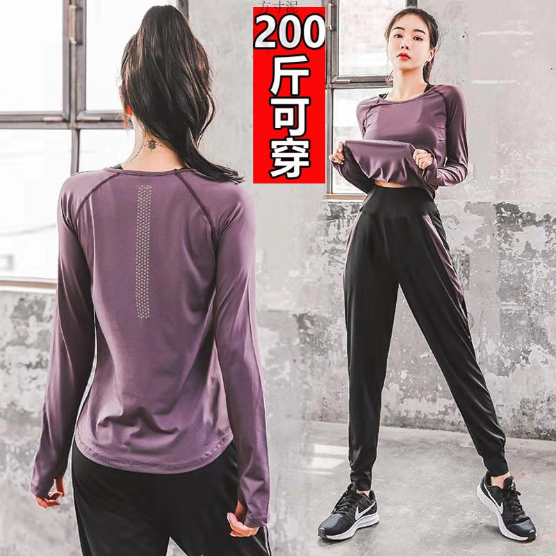 요가 옷 체육관 스포츠 세트 여성 플러스 사이즈 느슨한 여름과 가을 새로운 아침 인터넷 유명 인사 대외 무역을위한 빠른 건조 옷