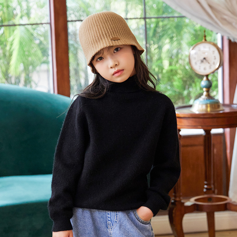 어린이 순수 양모 스웨터 소년 터틀넥 풀오버 두꺼운 스웨터 걸스 터틀넥 캐시미어 니트 베이스 탑 패션