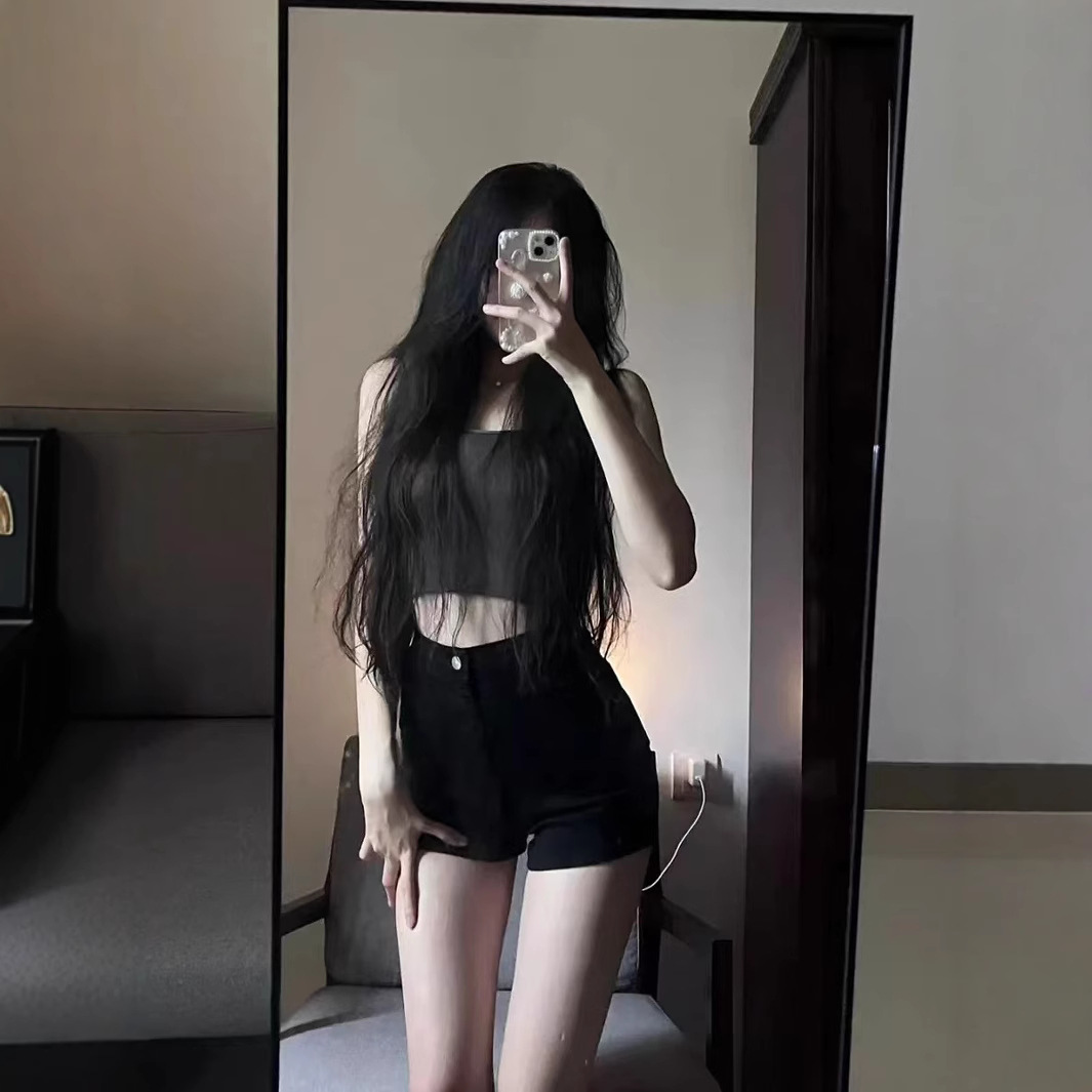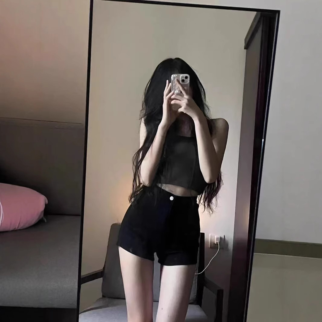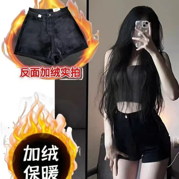 봄과 가을 새로운 검은 데님 반바지 캐주얼 슬림 핏 슬리밍베이스 타이트 A 라인 스커트 핫 팬츠 여성용 트렌디스토어 가기