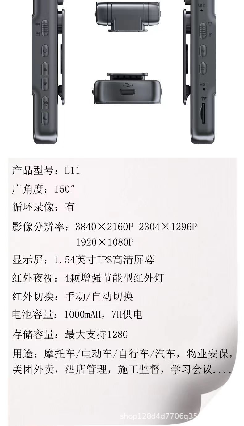 L11 고화질 카메라 광각 야간 투시 카메라 야외 4K 레코더 자전거 택배 법 집행 비디오 녹화 DV스토어 가기