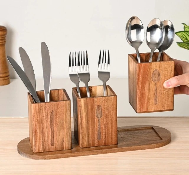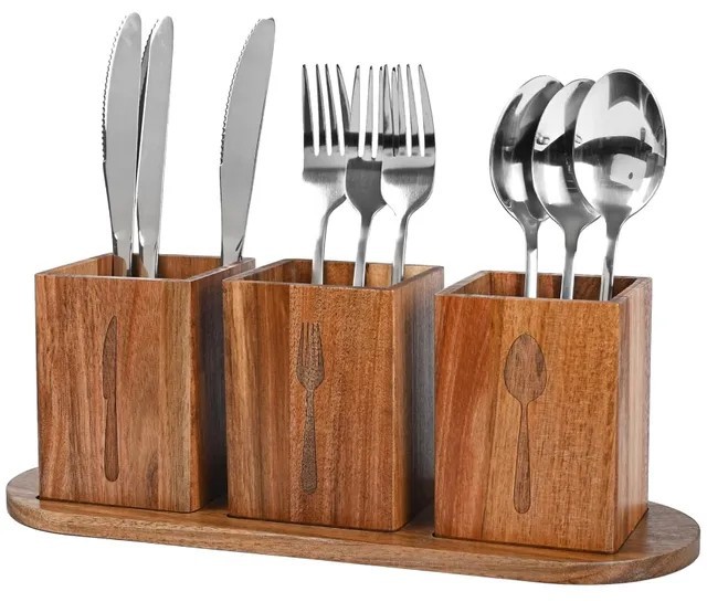 나무 식기 상자 분리 된 나이프와 포크 저장 주방 작업대 접이식 랙 트레이 저장 상자 나무 젓가락 케이지