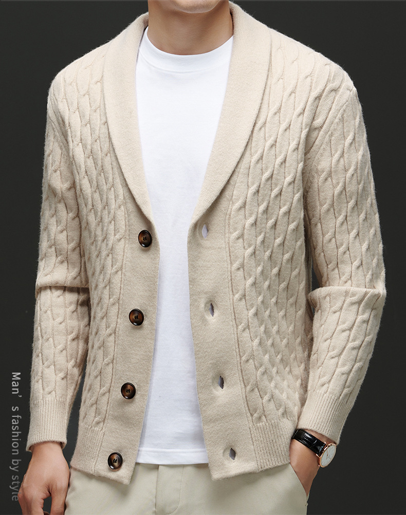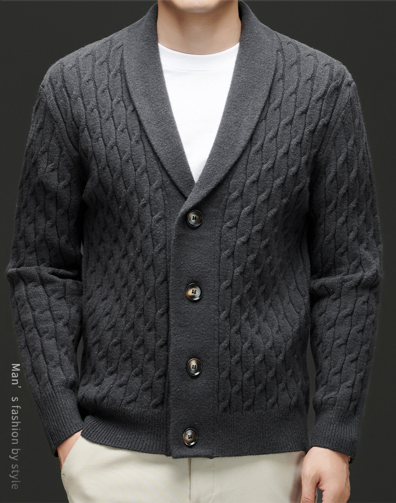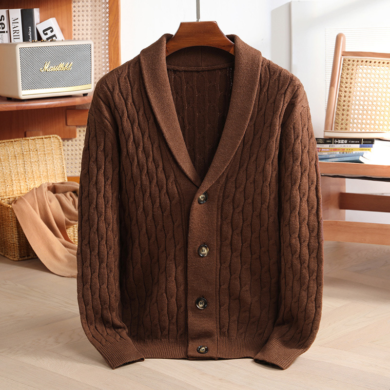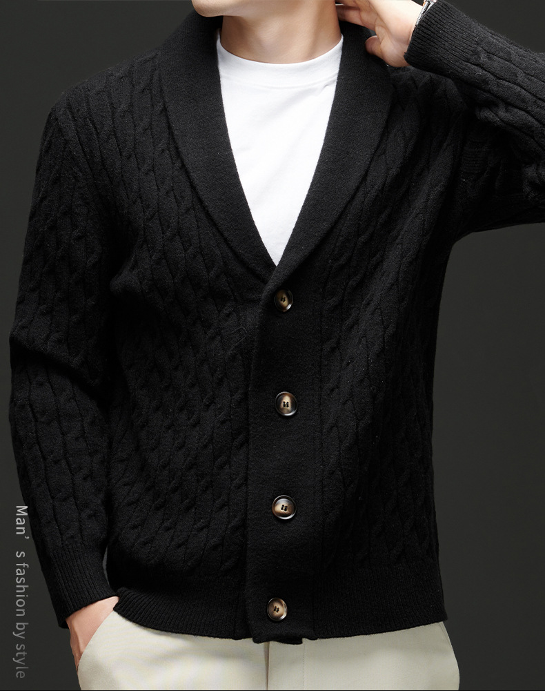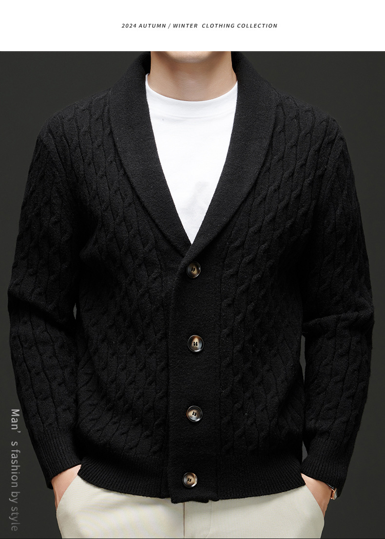 국경 간 가을과 겨울 코트 단색 패션 따뜻한 니트 카디건 옷깃 레트로 캐주얼 남성 스웨터 라이트 럭셔리 탑