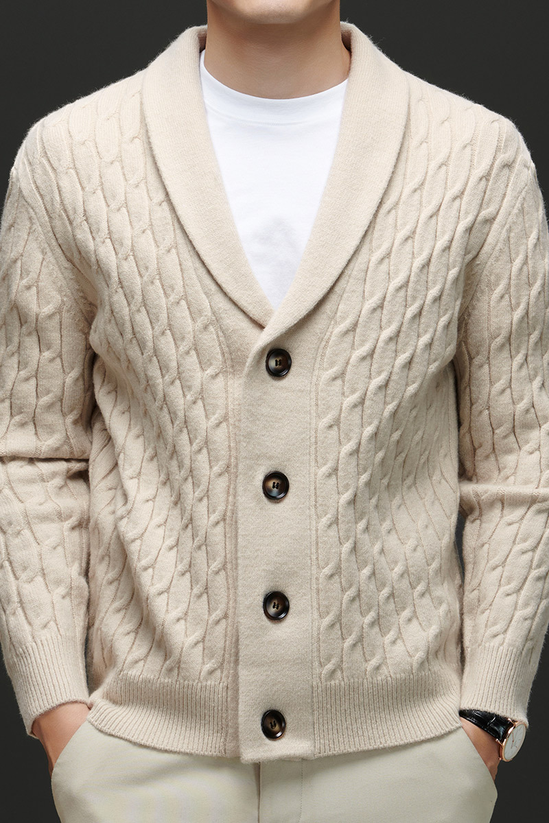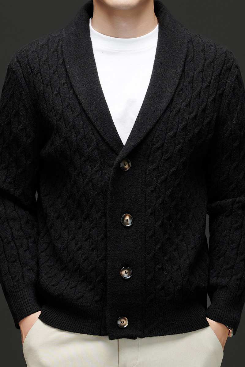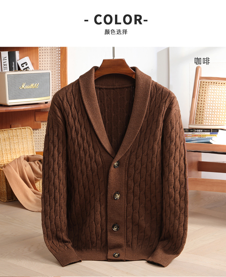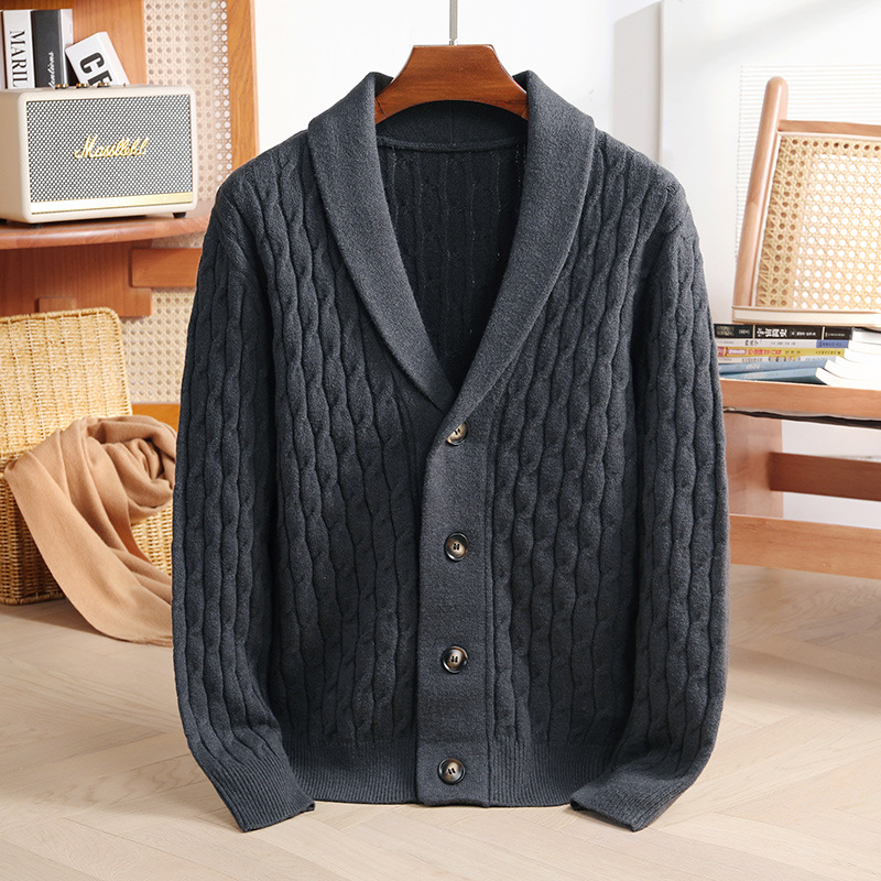 국경 간 가을과 겨울 코트 단색 패션 따뜻한 니트 카디건 옷깃 레트로 캐주얼 남성 스웨터 라이트 럭셔리 탑